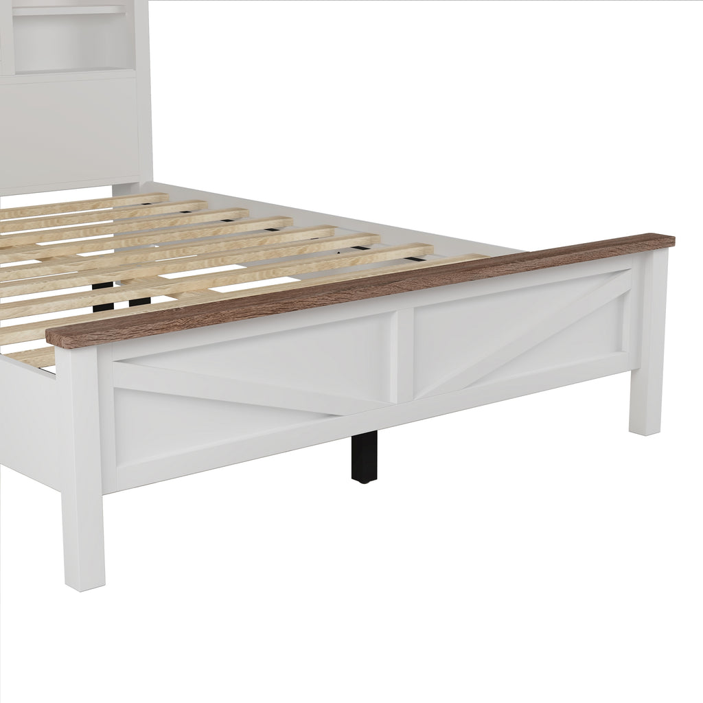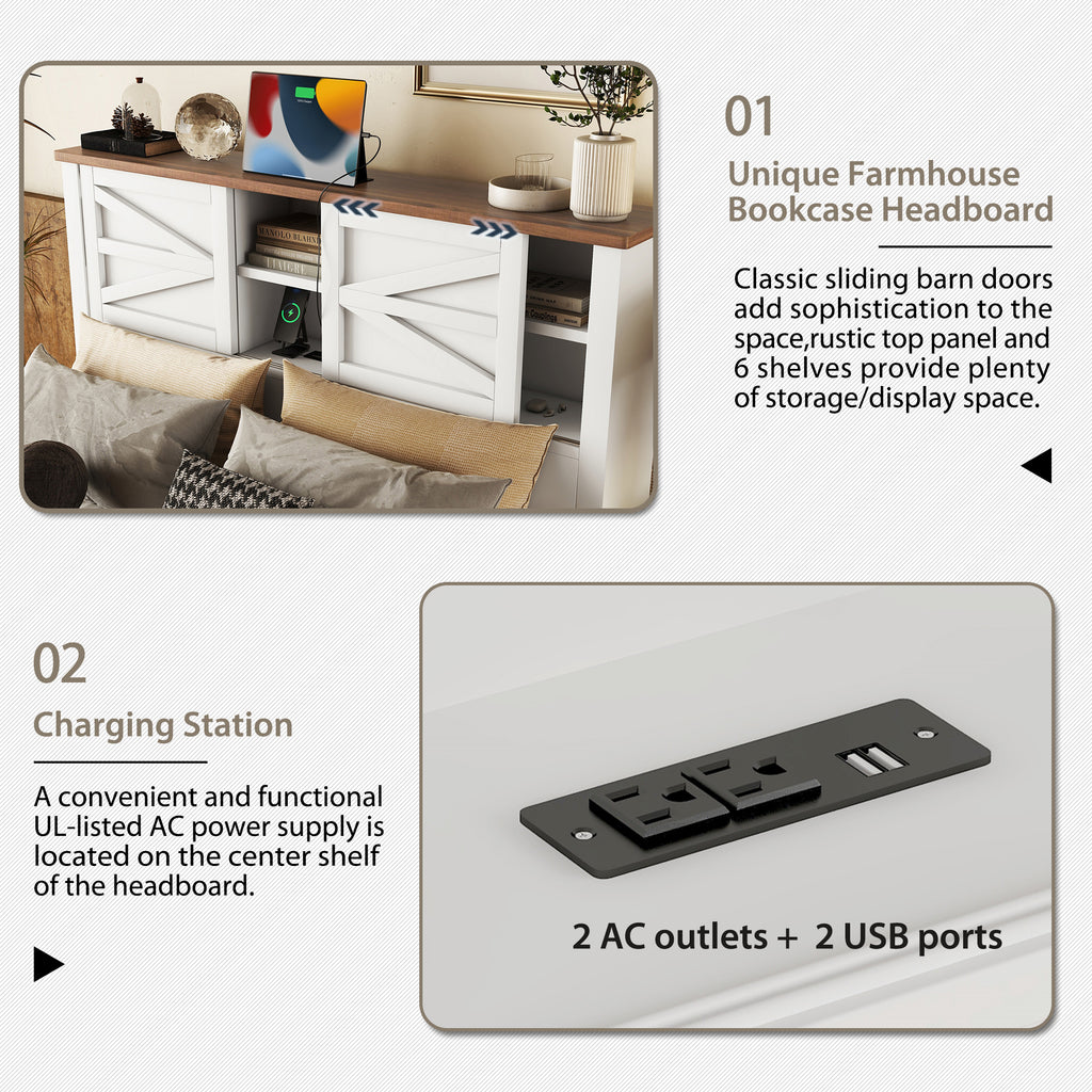 Platform Bed with Double Sliding Barn Door,Rustic Wood Bed with