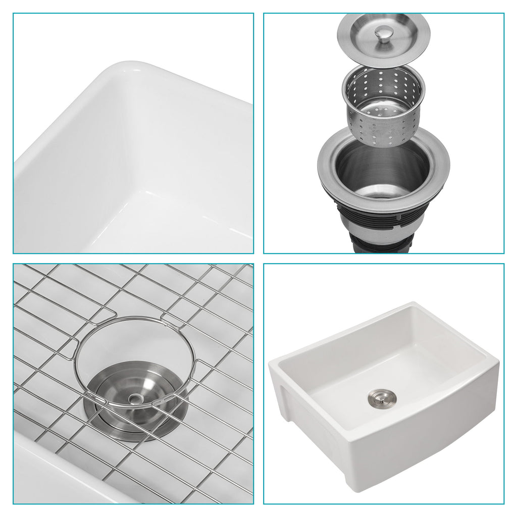 Sink 24" Apron Front Single Bowl With Arch Edge For Kitchen - White