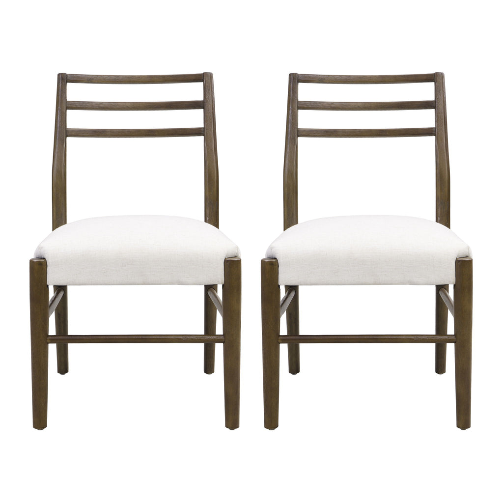 Farmhouse Style Dining Chair Set With Ladder Back Design - Beige