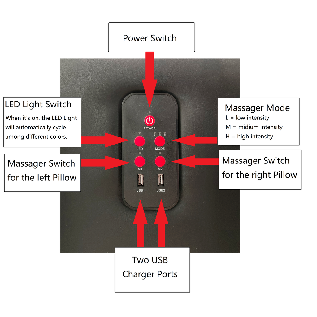 - Two sets of vibration motors (4PCS*2 sets) are built on both sides of the head of the bed, and the intensity of strong, medium and weak three gear can be adjustable pulse , 30 minutes regular massage.