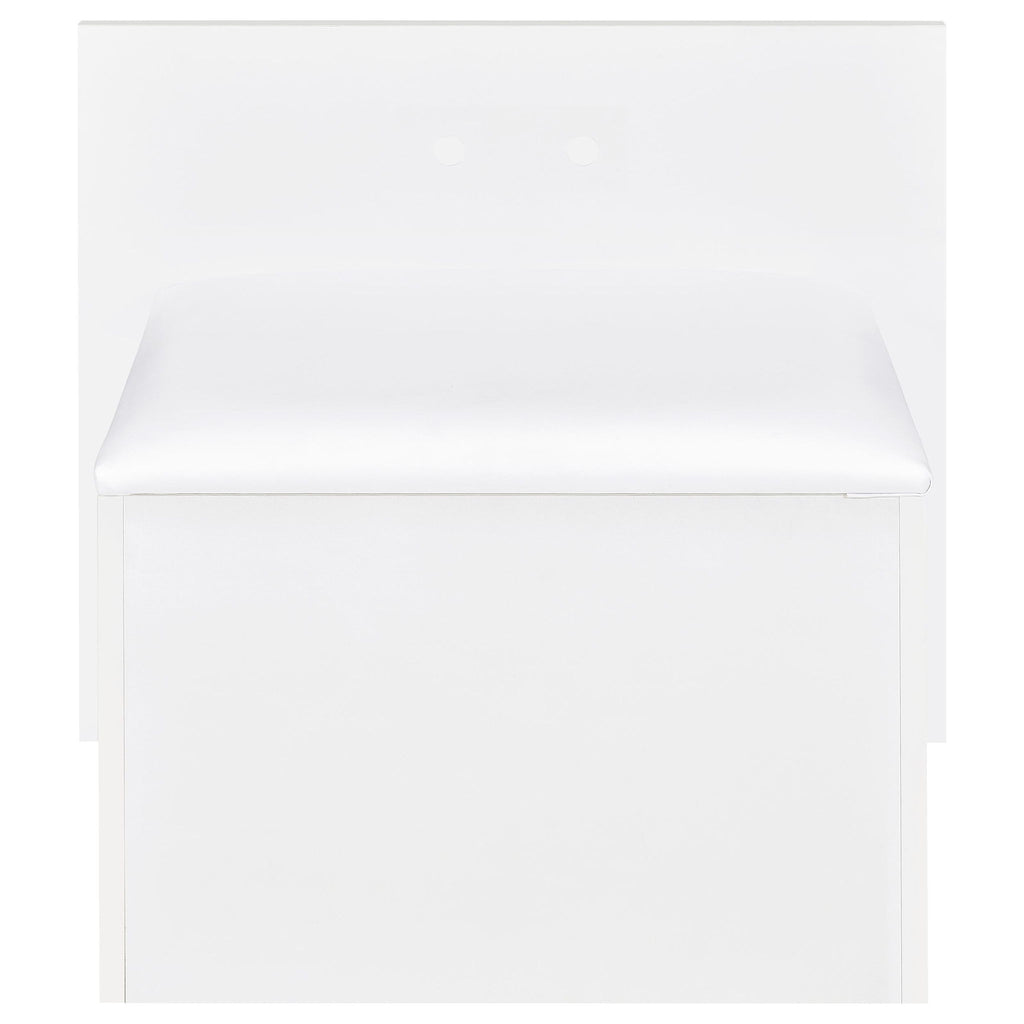 Transform your daily routine with this modern vanity desk, expertly merging sleek aesthetics and smart organization. Its high gloss finish, paired with clear acrylic handles, imparts a bright, contemporary look. Two smooth-gliding drawers and a cabinet with a framed fluted panel and adjustable shelf provide ample storage for cosmetics and styling tools. A tempered glass top keeps the surface pristine, while the integrated LED mirror, activated by a touch switch, ensures flawless lighting for every occasion.