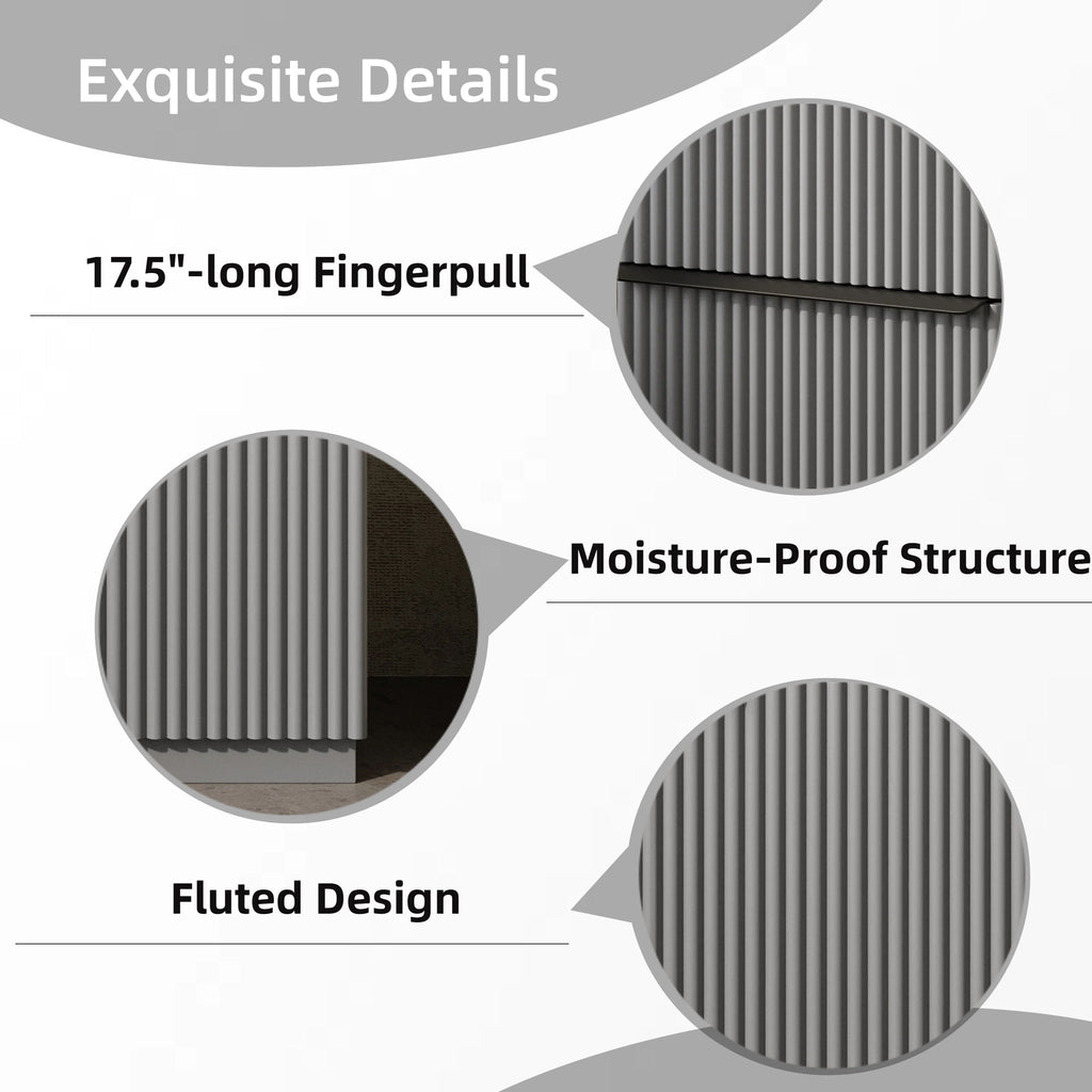 Fluted Bathroom Vanity With Sink, Full Extension Soft Close Drawers - Gray