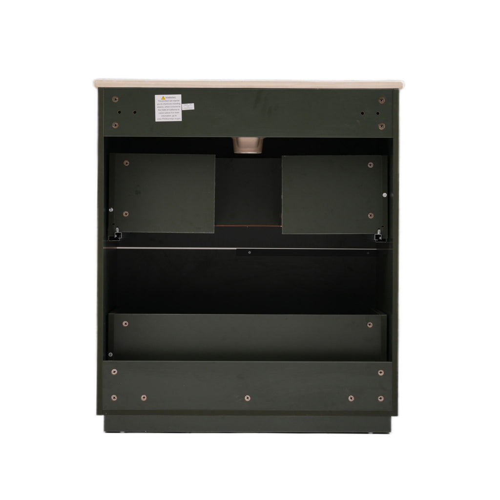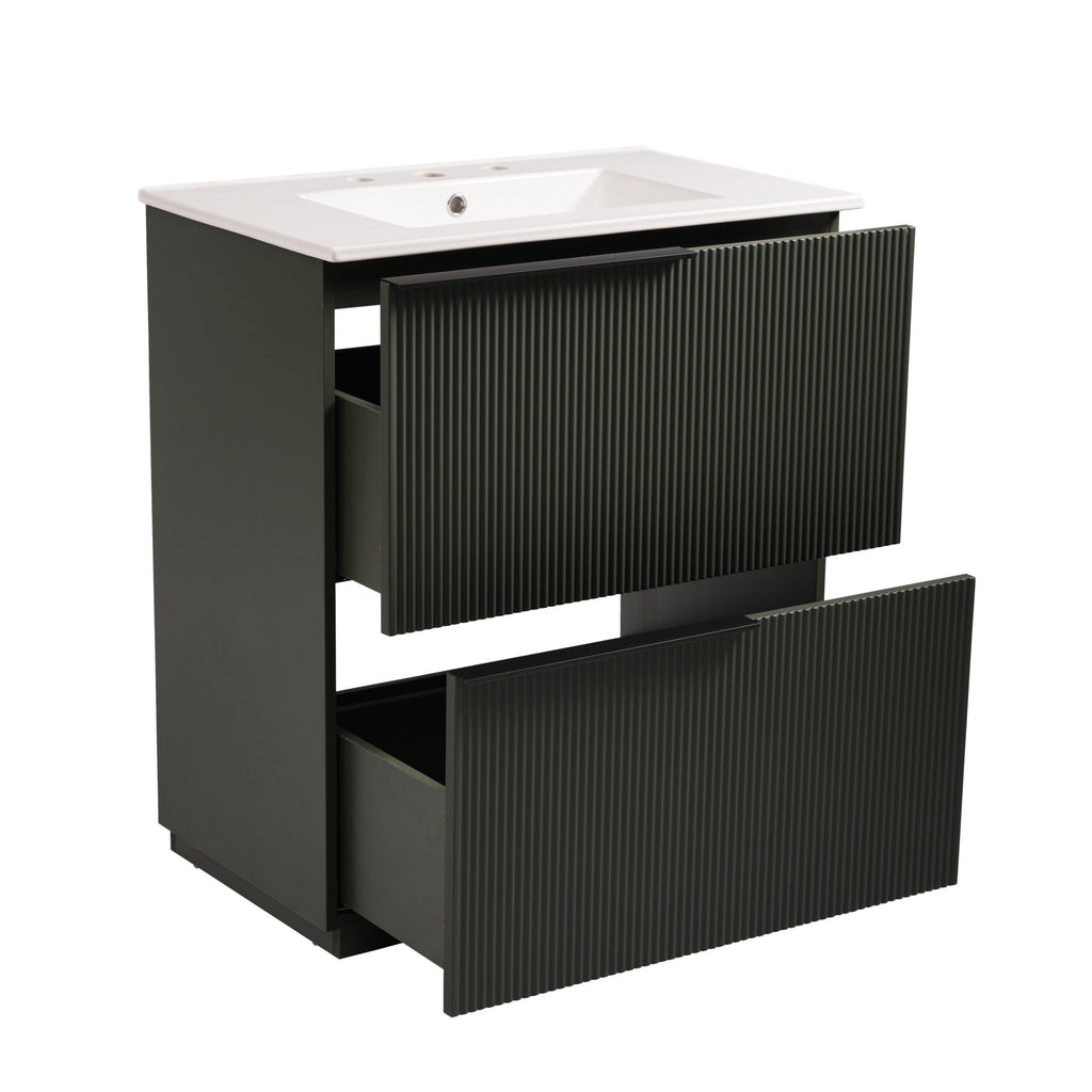 Fluted Bathroom Vanity With Sink, Full Extension Drawers, Soft Close Slides - Green