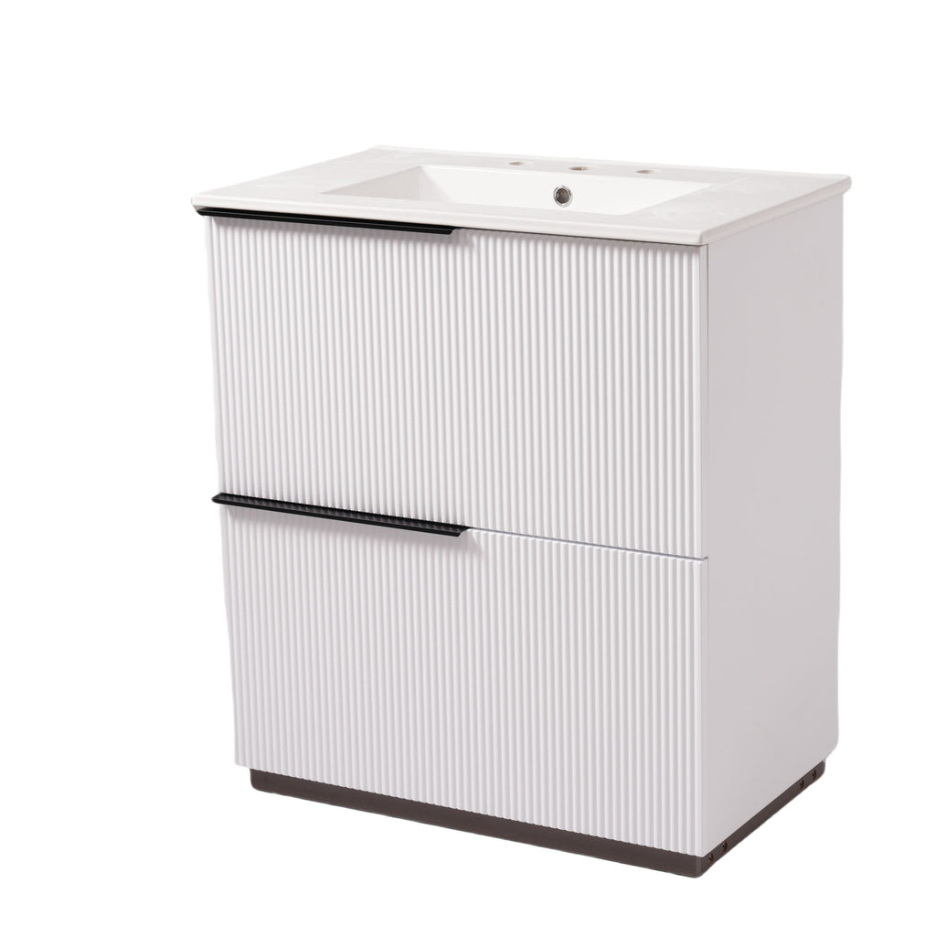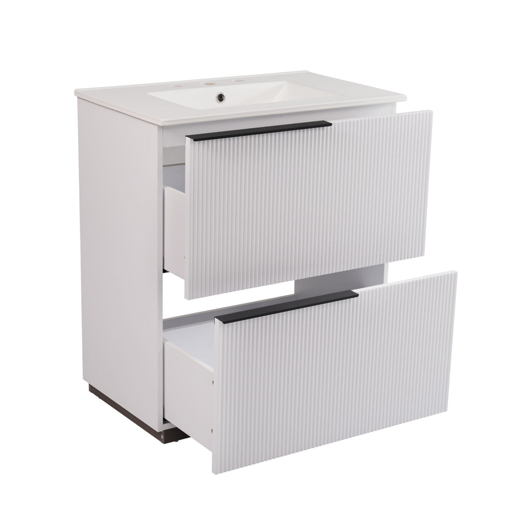 Fluted Bathroom Vanity With Sink, Full Extension Drawers, Soft Close Slides - White