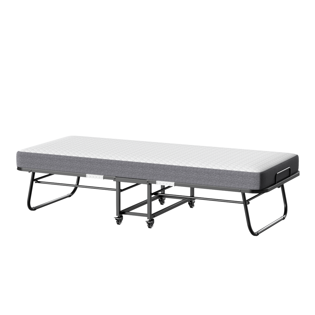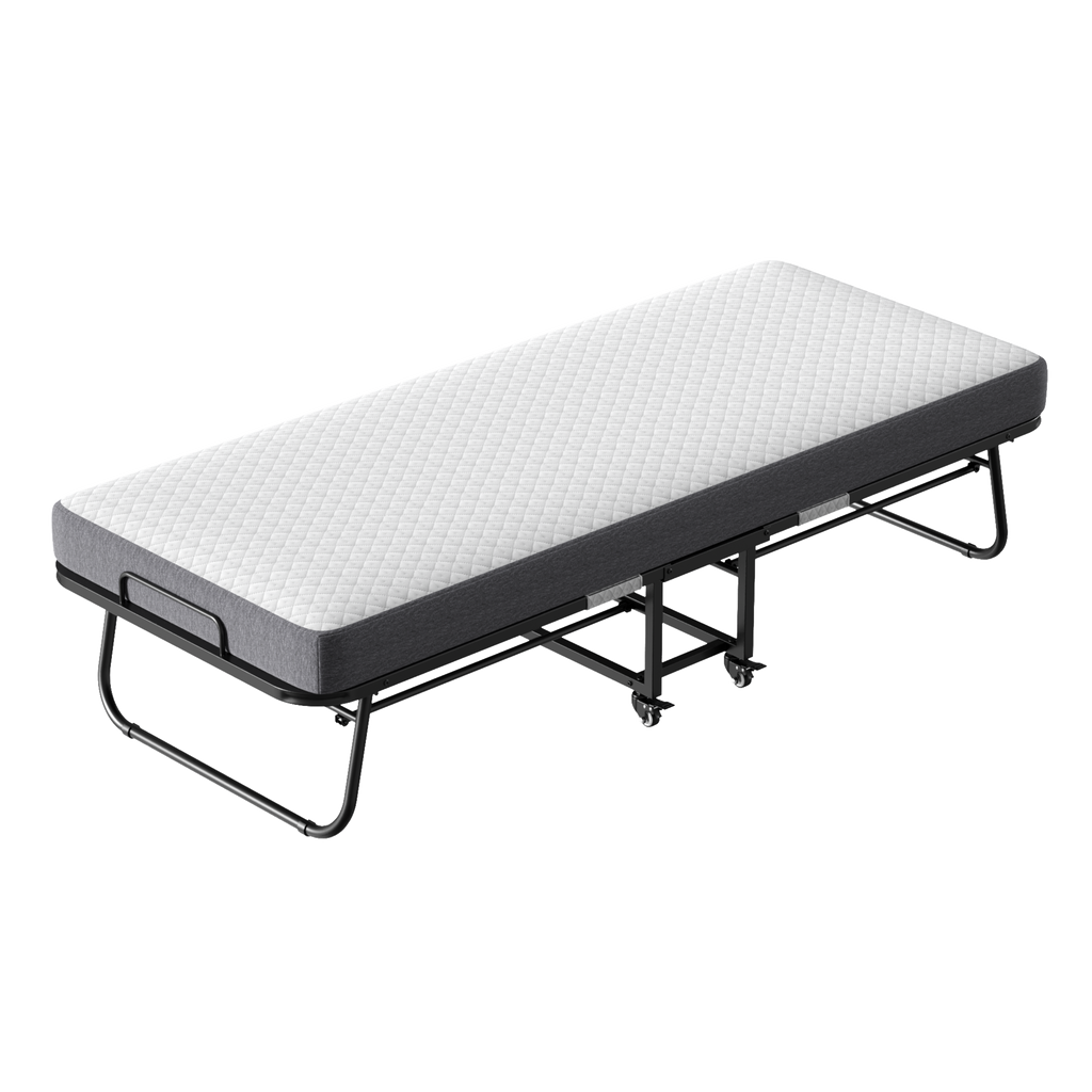 Folding Bed with Mattress 75' x 31' Rollaway Guest Bed Portable Foldable Bed for Adults with 5' Memory Foam Mattress Space-Saving All Metal Steel Pipe Frame Slatted Pipe Style
