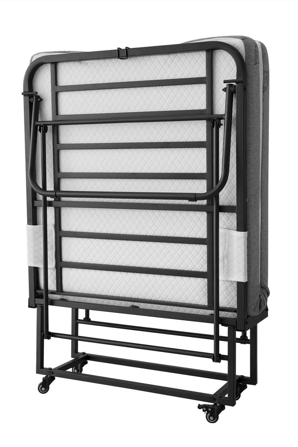 • Easy to Move & Lock: Folding beds with mattress for adults includes 4pcs casters that swivel 360°. Move the rollaway bed silently and smoothly by one person, and no scratches on floors.The wheels are lockable,press down to lock and ensure stability of the rolling bed with mattress.