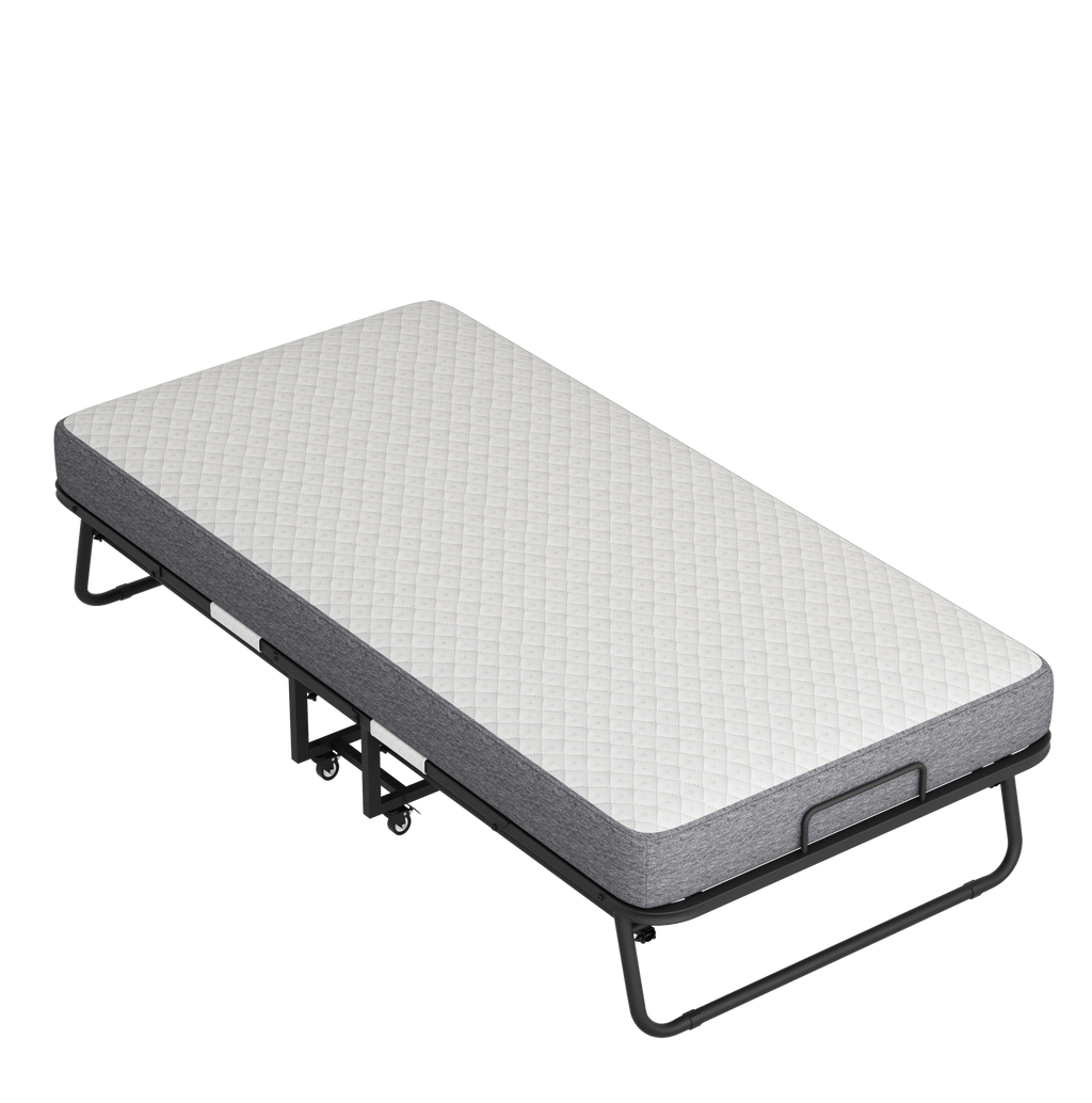- 5 Inch Luxurious Mattress:This folding bed with mattress made of 1.5' memory foam, 3.5' high-density support foam.Soft and comfortable, reduce fatigue, provide a nice sleep. The zippered mattress cover is made of soft polyester, which is breathable and skin-friendly, removable and washable, easy to clean.