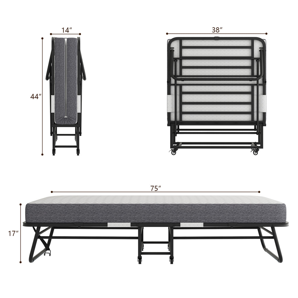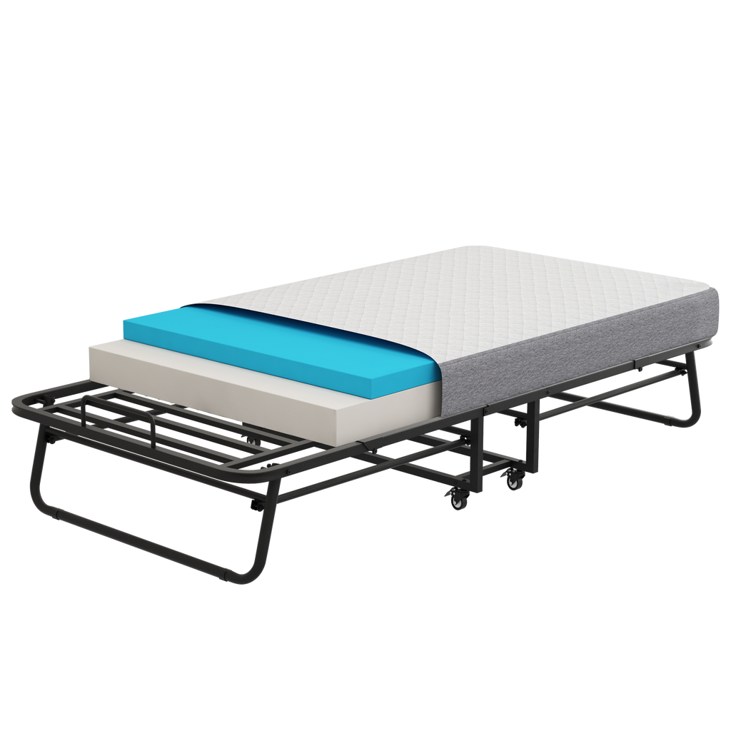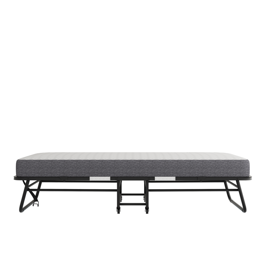 - Easy to Move & Lock: Folding beds with mattress for adults includes 4pcs casters that swivel 360°. Move the rollaway bed silently and smoothly by one person, and no scratches on floors.The wheels are lockable,press down to lock and ensure stability of the rolling bed with mattress.