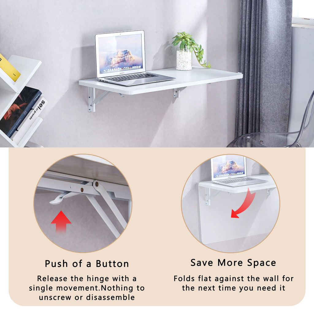 Laundry Room Folding Table Wall Mounted Folding Table For Small Spaces, Fold Down Desk, Workbench, Addition To Garage & Shed - White