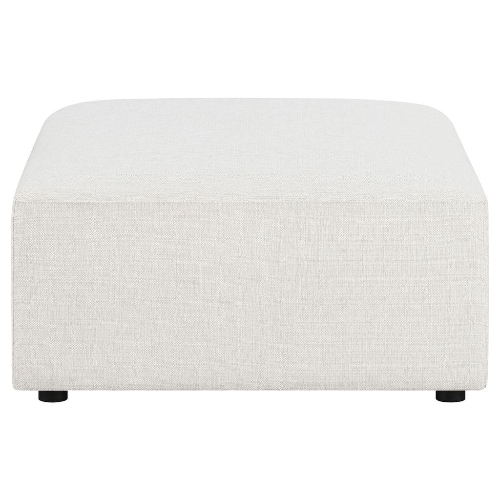 Create a longer chaise lounge or a coffee table in front of your modular sectional with this modern ottoman, upholstered in an easy-to-clean pearl performance fabric across its foam padded pocket coil cushion. Waterfall-like edges offer a clean simply silhouette, accented by round black finished legs tucked away beneath.