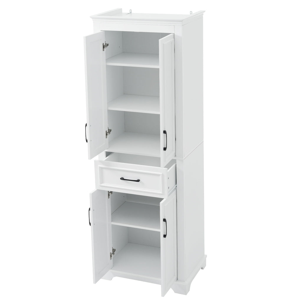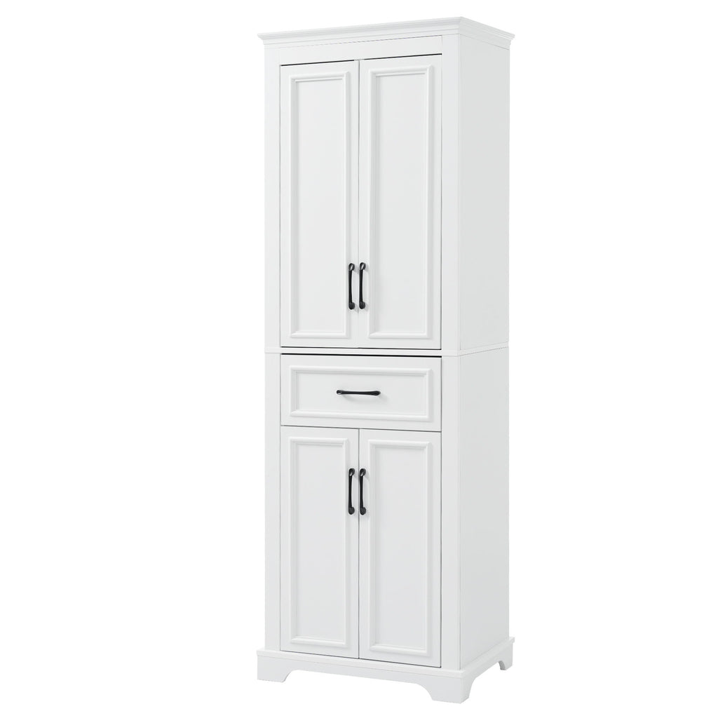 Freestanding Bathroom Vanity, Elegant Design With 4 Doors & 1 Drawer, Adjustable Shelves, Damping Hinges - White