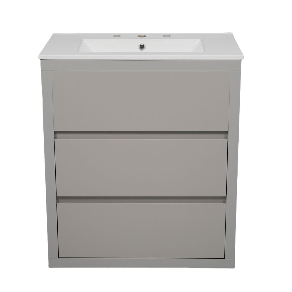 Freestanding Bathroom Vanity With Sink, 2 Full Extension Drawers, Soft Close Slides - Gray