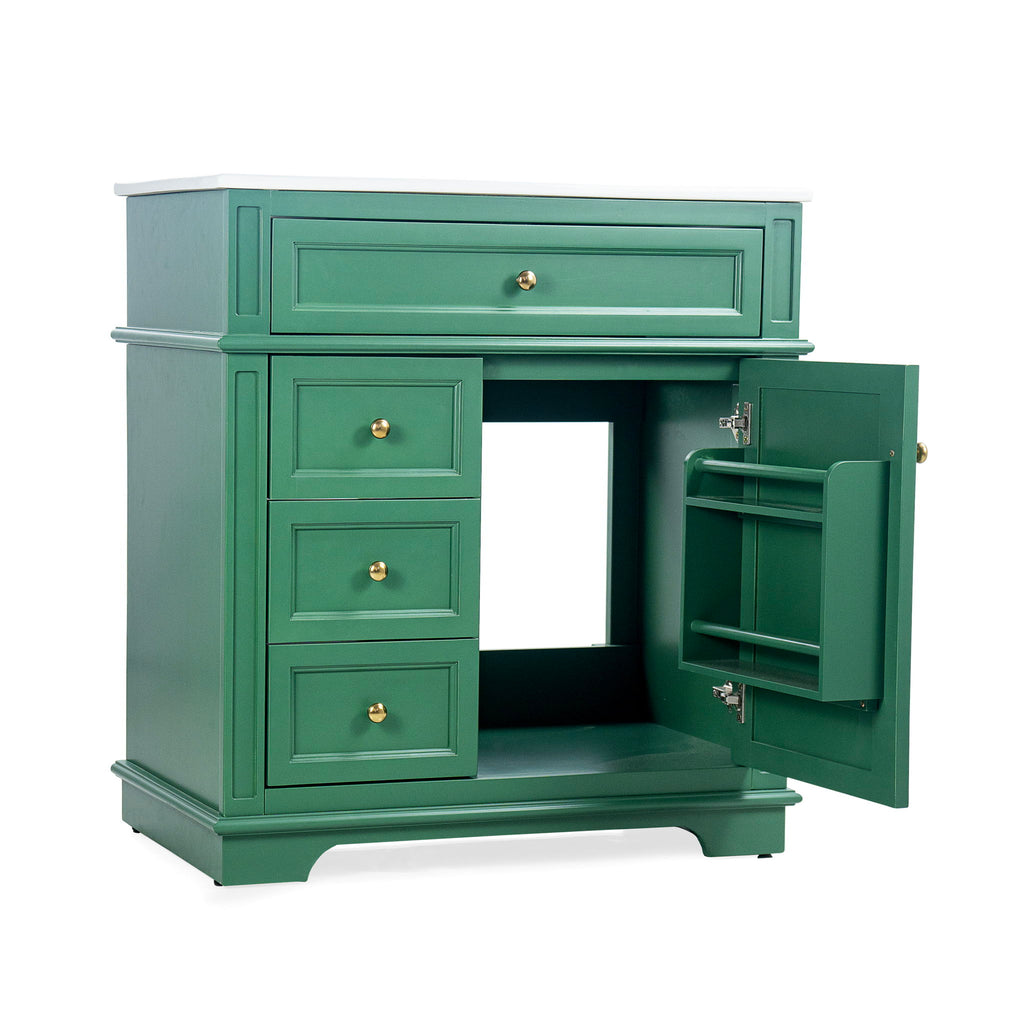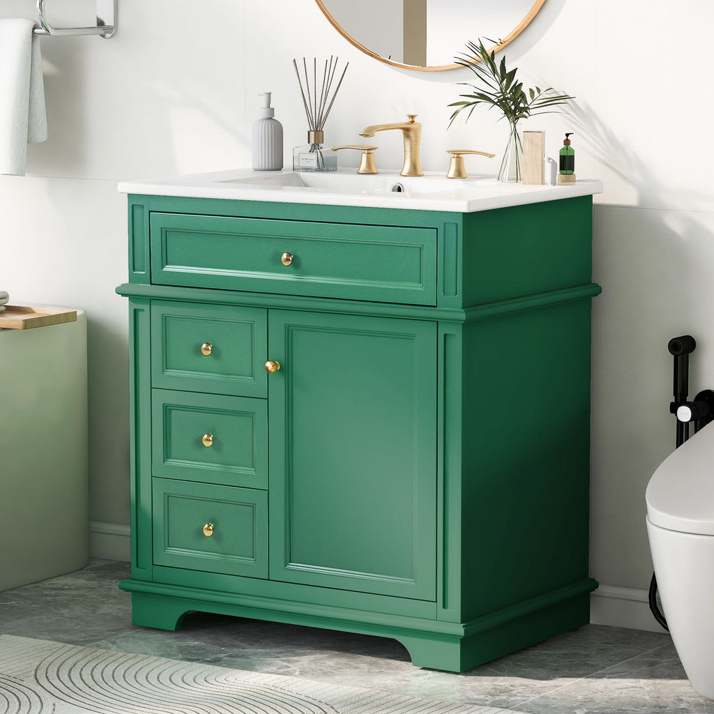 30" Bathroom Vanity With Sink, 1 Tip Out Drawer, 3 Drawers, Door Shelf, Soft Closing Door - Green