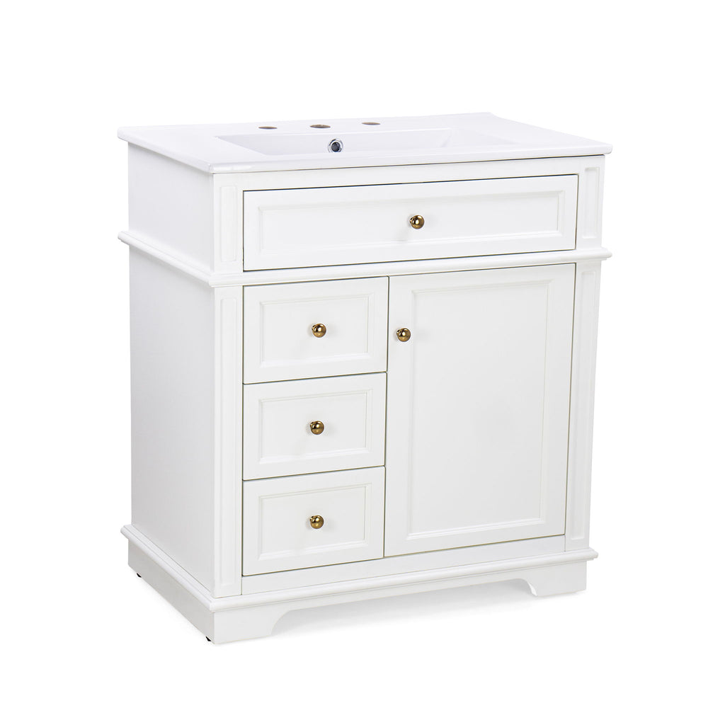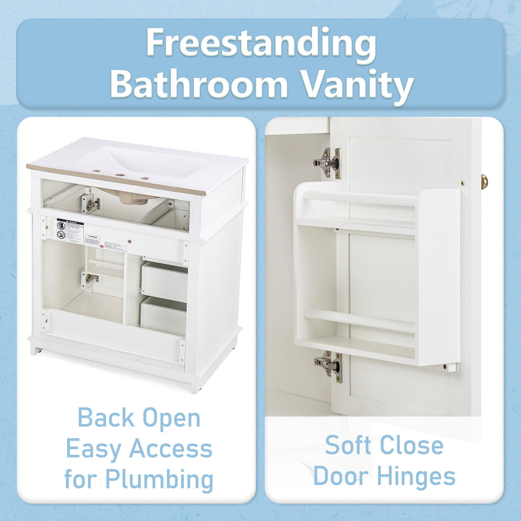 Freestanding 30" Bathroom Vanity With Sink, Soft Closing Door, Tip Out Drawer - White