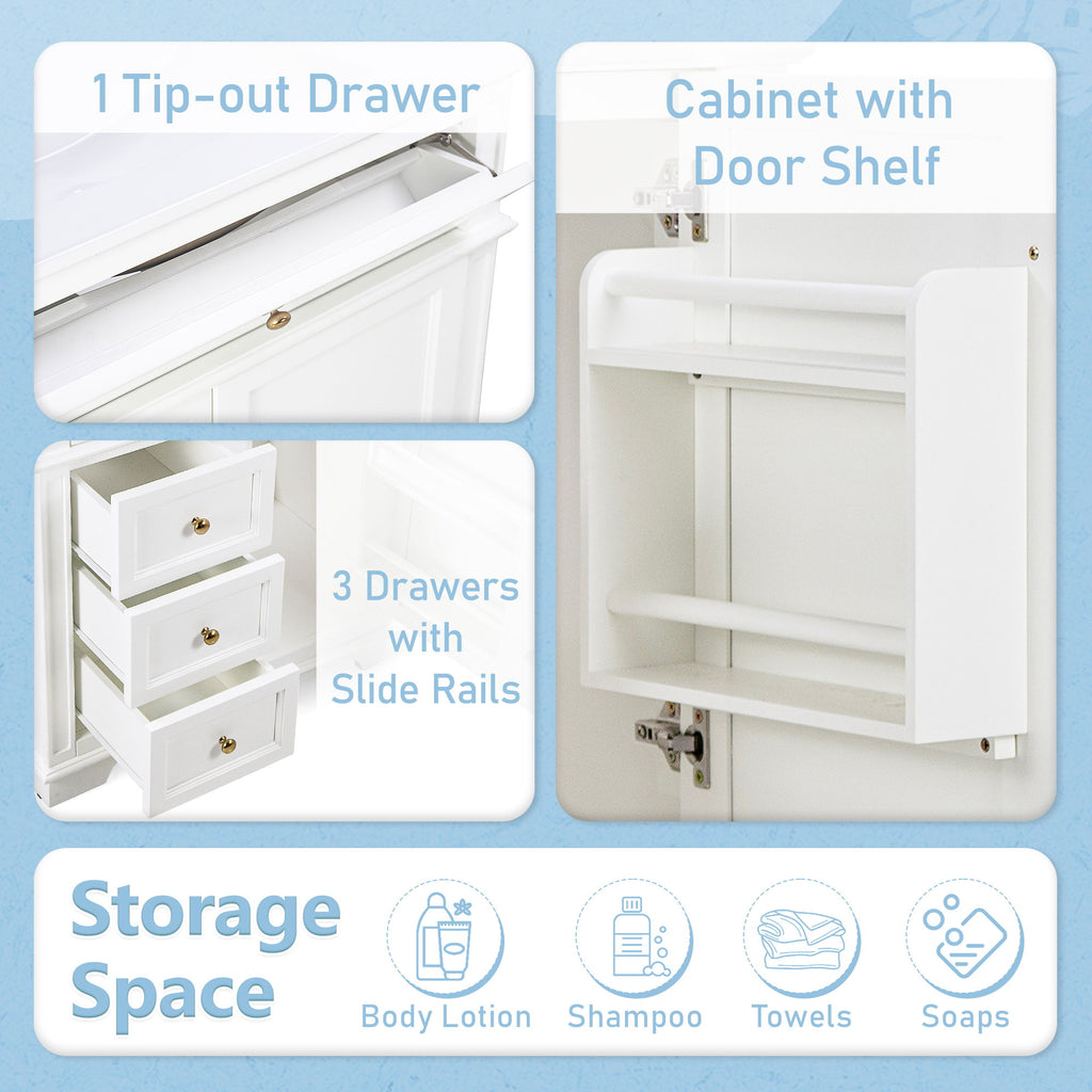 - Vanity with Storage: Includes a cabinet with door shelf, one tip-out drawer, and three slide rail drawers for ample storage.