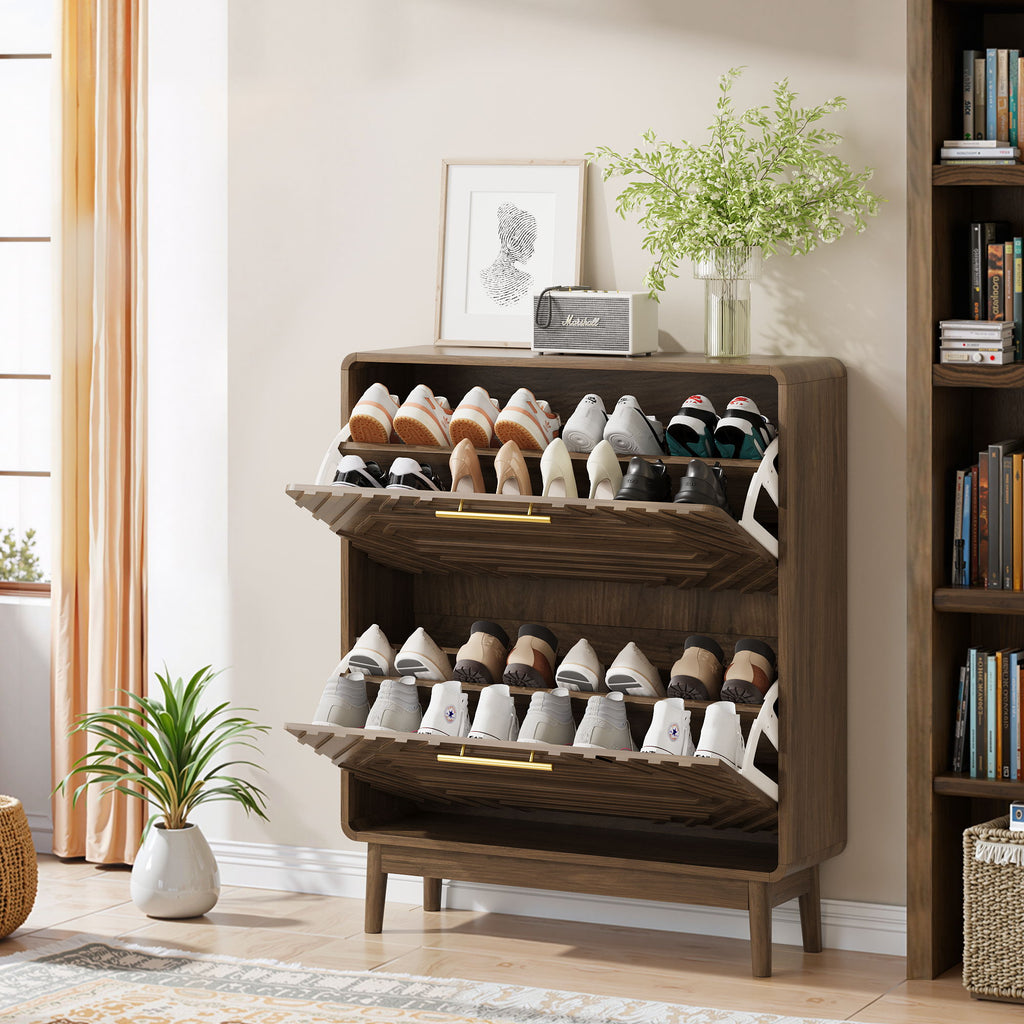 Freestanding Shoe Cabinet With 2 Flip Top Drawers For Entryway - Walnut