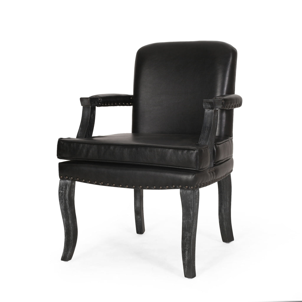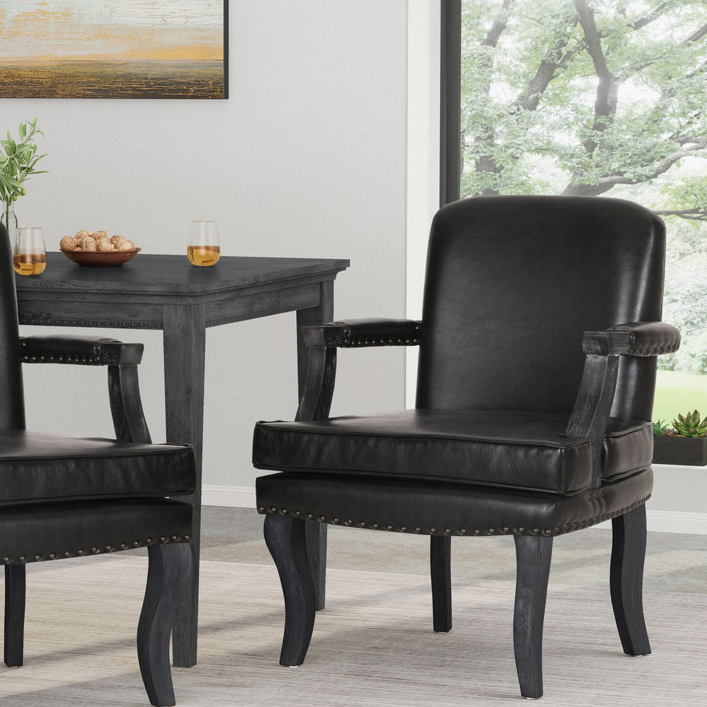 Sophisticated Dining Chair With Nailhead Trim - Black / Weathered Wood