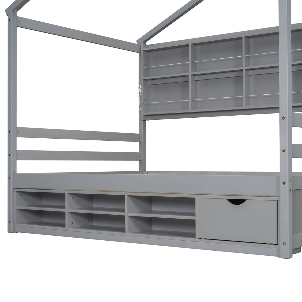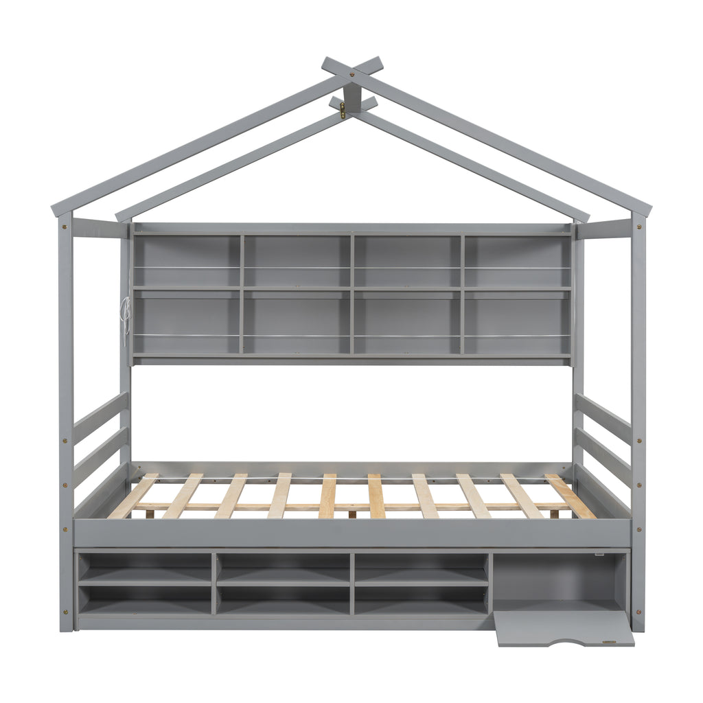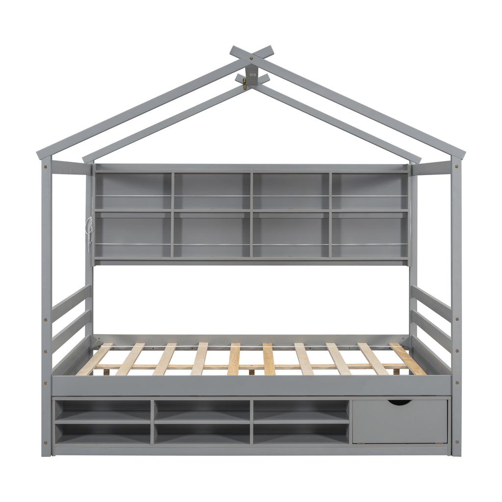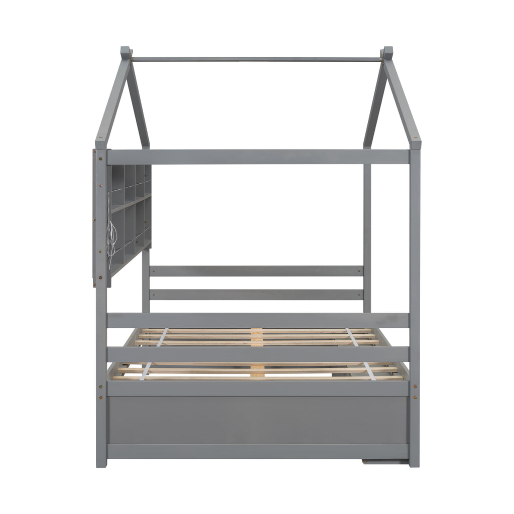 - #1 [Wooden House-shaped Bed]The unique design of wood house-shaped bed with roof frame, abundant storage room provides you with a joyful access to the natural woods, while you go to bed and fall asleep. Various decorations and accessories can be hung up on the house frame to accompany your whole sleep and daily activities.