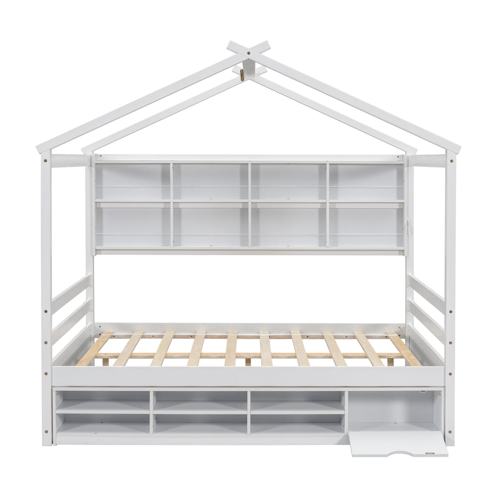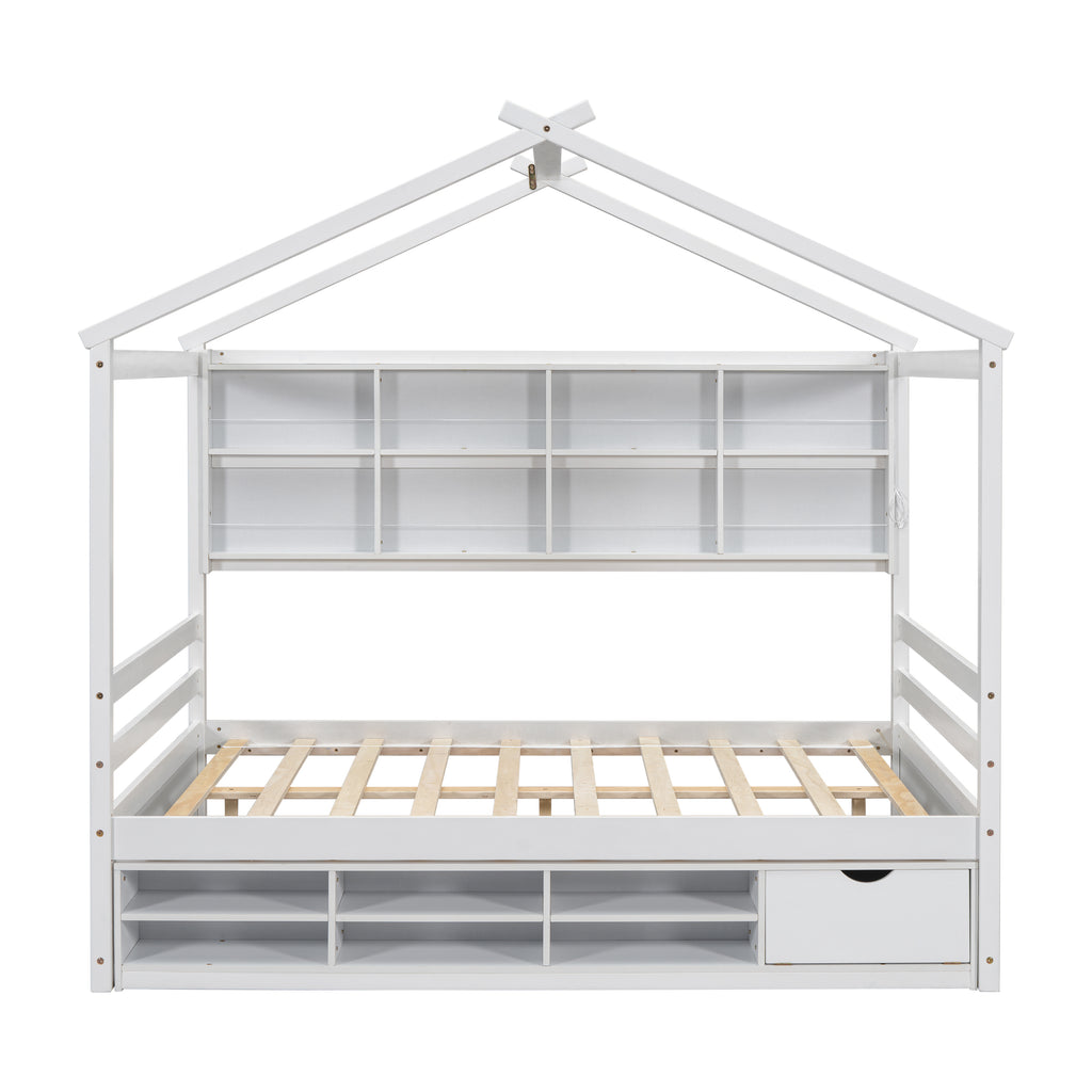 - #1 [Wooden House-shaped Bed]The unique design of wood house-shaped bed with roof frame, abundant storage room provides you with a joyful access to the natural woods, while you go to bed and fall asleep. Various decorations and accessories can be hung up on the house frame to accompany your whole sleep and daily activities.
