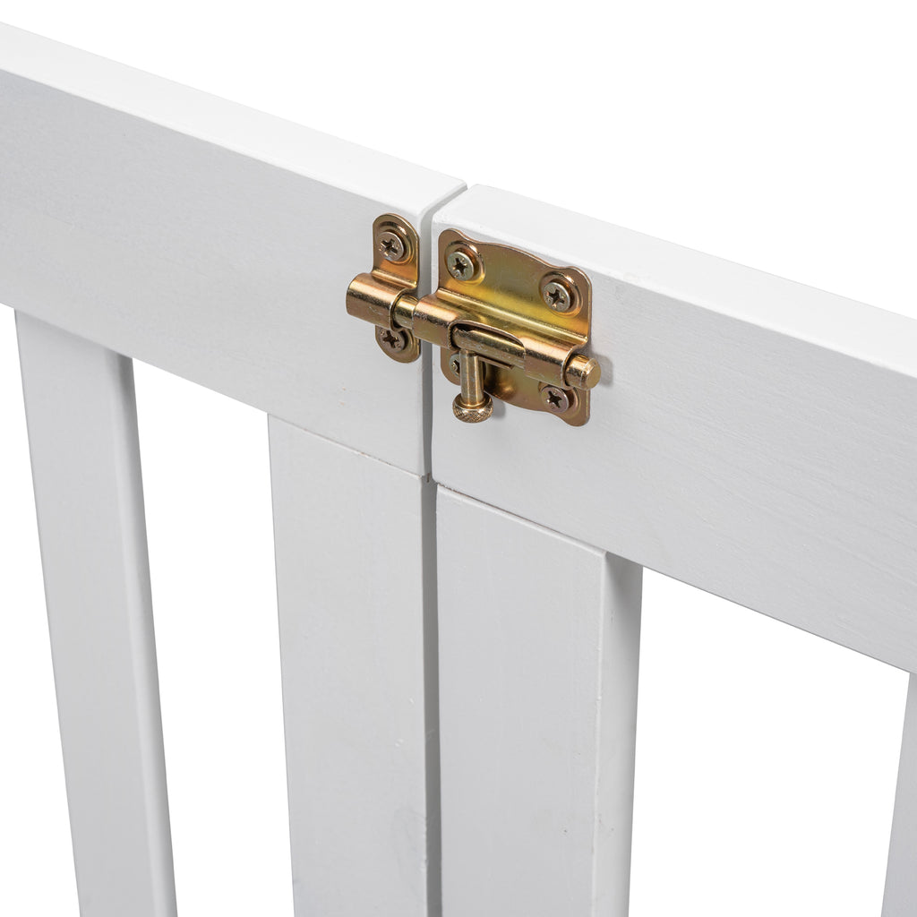 - #2 [Bed Platform with Fence Design] The bed platform with the fence guardrails and the door with a latch, not only provides better fun and joy, but also reduce any concerns about the safety. The guardrails around the bed are designed to have a small door to made easy to get in and out of the bed.