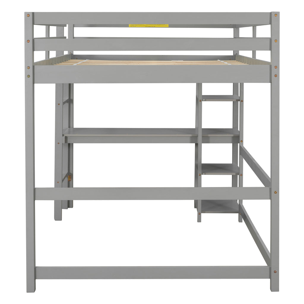 - [Comprehensive Design] The feature of this loft bed not only ensures better sturdy contruction,but also reduce safety concerns, the desk offering the kids a quiet ,cozy place for reading and writing . In addition, the bulit-in ladder is designed with a safe and wider width to provide more spacious steps and solid support, making it easier for you to climb up and down the ladder.