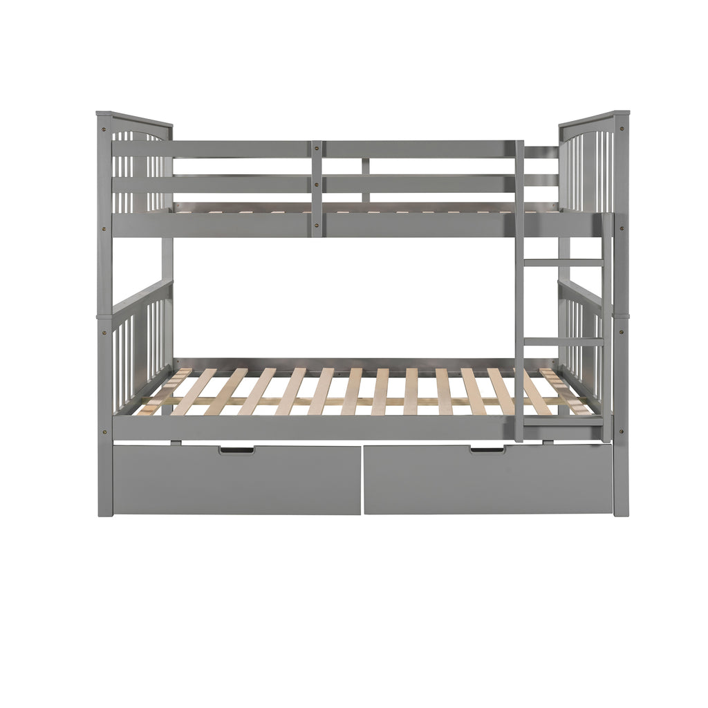 - [Versatility galore] This bunk bed features one full size upper bed, one full size bottom bed and a pair of drawers for accommodating you or overnight sleepers. It can also be divided into two individual beds for even more convenience, depending on how you want to organize your space. No spring box needed.