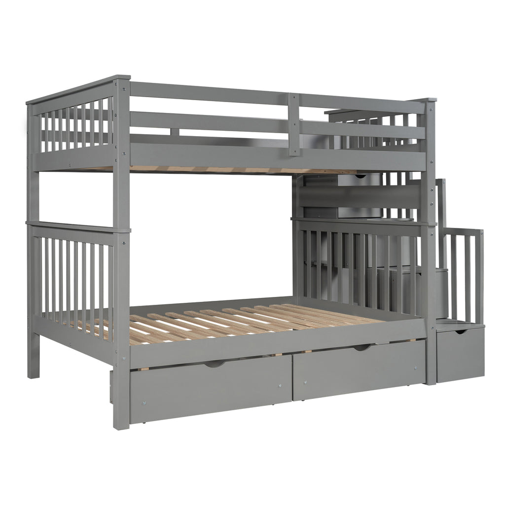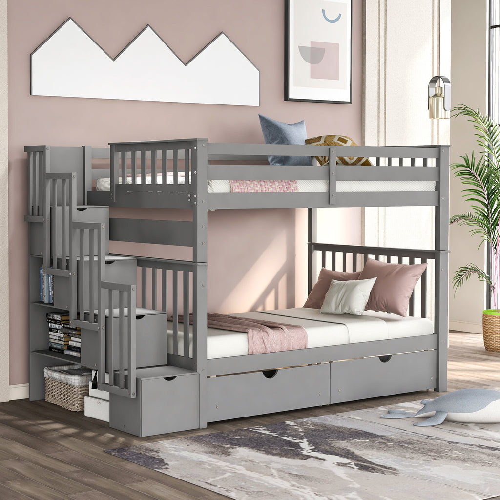 - [Solid, safe staircase] With a four-step set of stairs, this bunk bed provides easy and safe access for getting in and out of the top bunk. Also, given the width of the stairs they also double as very functional storage and help you change the quilts and bed sheets effortlessly when compared with traditional laddered bunks. And the staircase can be placed on both sides of the bed.