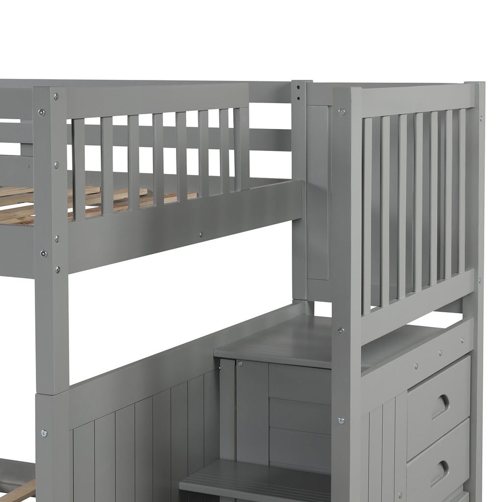 - [Maximized Storage Space] The built in 4 drawer located on the other side of the staircase are perfect for you to store quilts, bed sheets and other necessities. On top of that, you can store books and toys, making room-tidying a breeze. Functional and aesthetic, this bunk bed will enhance any bedroom.