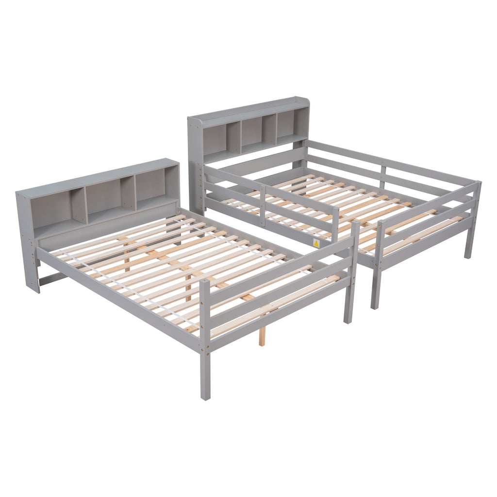 - [Bookcase Headboard] The multifunctional bookcase integrated into the headboard contains distinct compartments that can be used to decorate and store books, toys, lamps and other accessories. This intelligible design saves the extra space and cost for the need of a bedside cabinets, and it's the perfect solution for small living space- transforming a small chaotic space to a neat and fascinating bedroom.
