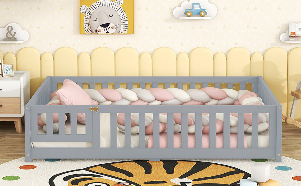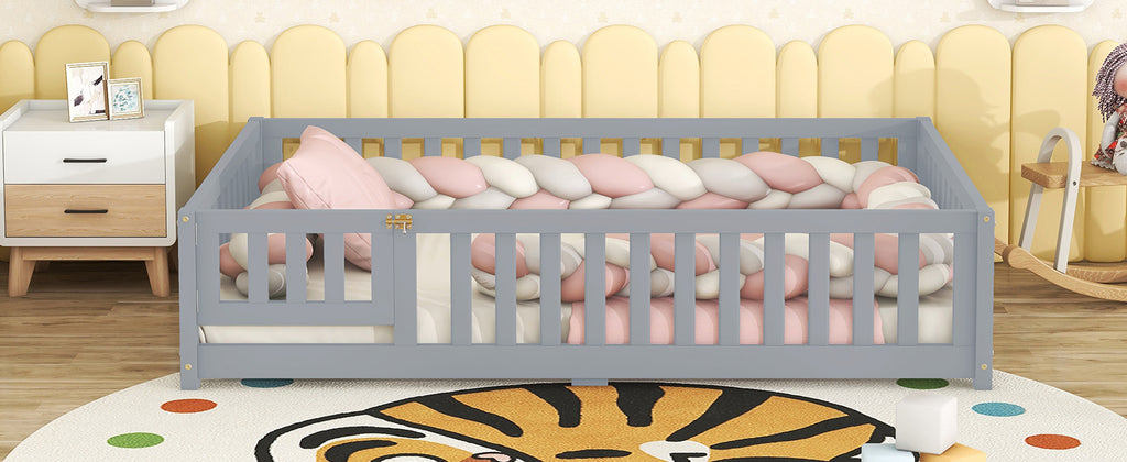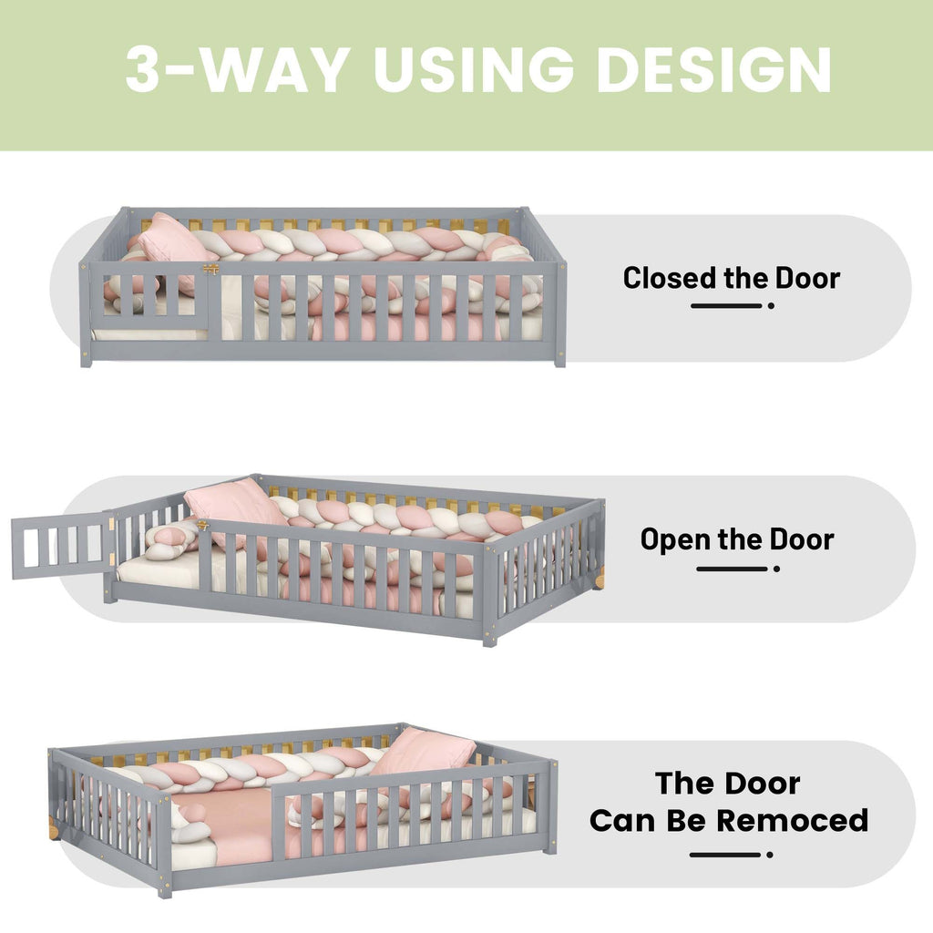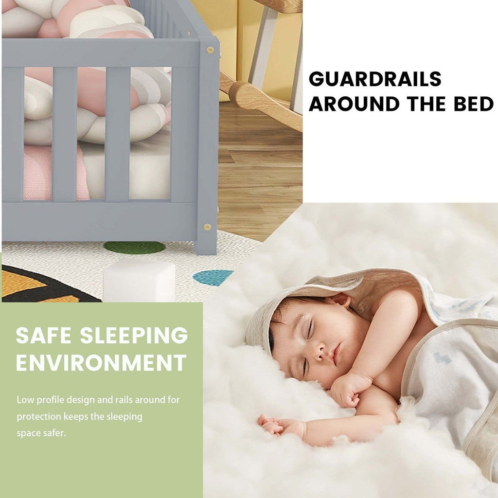 Low Profile Design-The kids full floor bed with rails around and low profile design closed to the ground keeps the sleeping space safer for kids and explore freely.