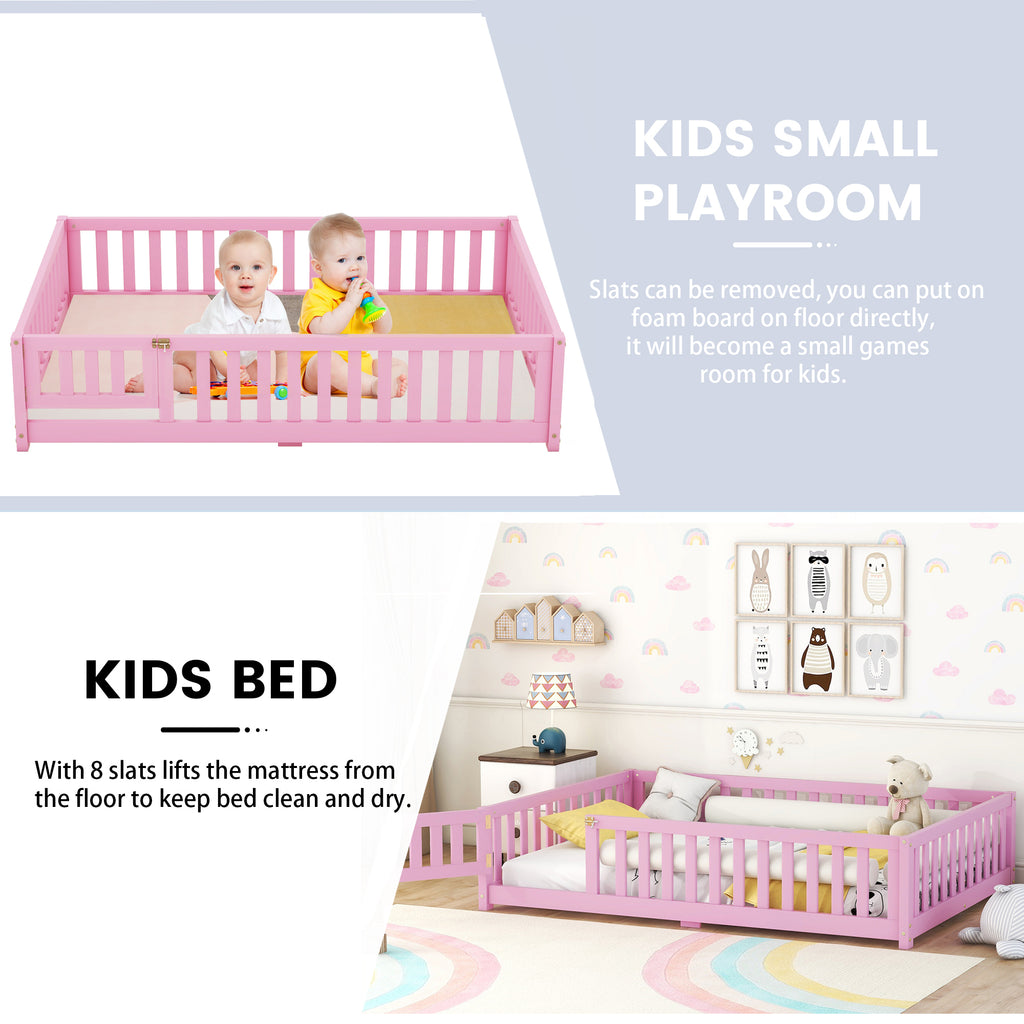 Low Profile Design-The kids full floor bed with rails around and low profile design closed to the ground keeps the sleeping space safer for kids and explore freely.