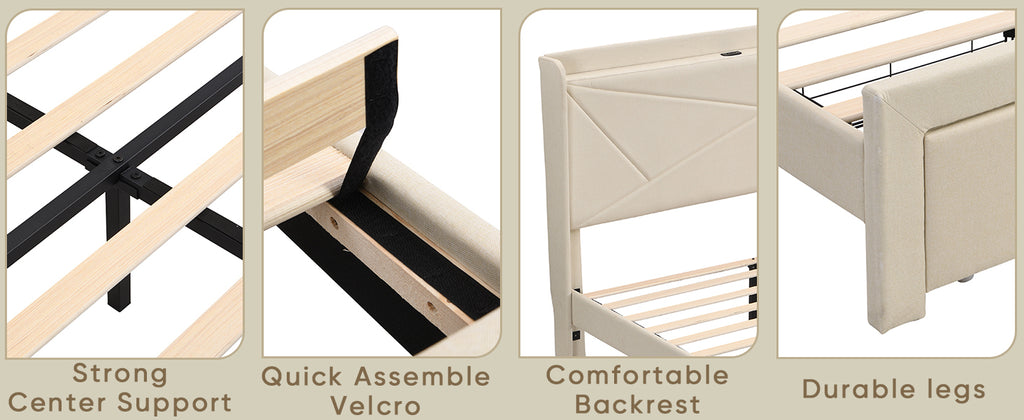 - Storage Shelf with Charging Station: Our bed is equipped with a convenient storage shelf that includes built-in 20w fast charging ports (including 3 USB ports and 1 Type-C port). This feature allows you to conveniently charge all your electronic devices at any time, keeping them ready for use. Additionally, the 2 tier headboard storage provides a practical space to keep common small items, such as remotes, within easy reach, ensuring easy access and organization.