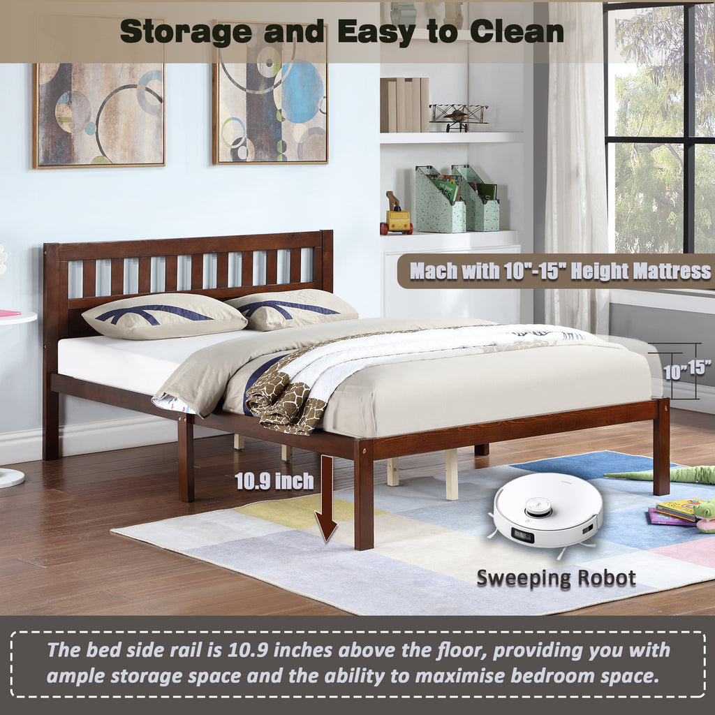 - 【Sturdy Bed Frame】Crafted from high-quality pine wood and plywood, this strong and stable bed frame assures long-lasting use without squeak-free. With a weight capacity of up to 440 lbs, durability and stability are guaranteed.