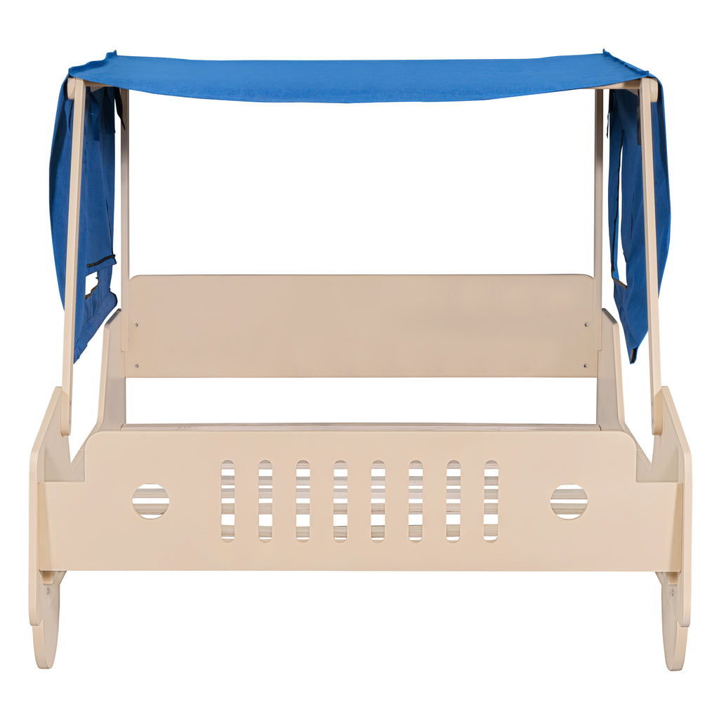 - [Functional and Fun Features] With a raised bed design, your child will feel like they're driving through rugged terrain as they climb in and out of their car bed. Plus, the tent canopy adds an extra element of fun and excitement, creating a cozy hideaway for reading, playing, or simply relaxing.