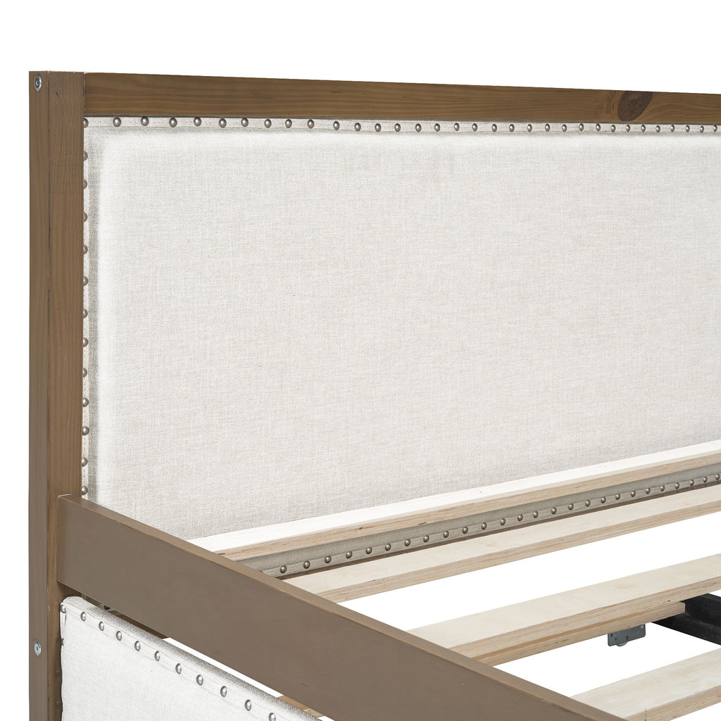 Full Size Daybed With Trundle And Nailhead Decoration - Wood