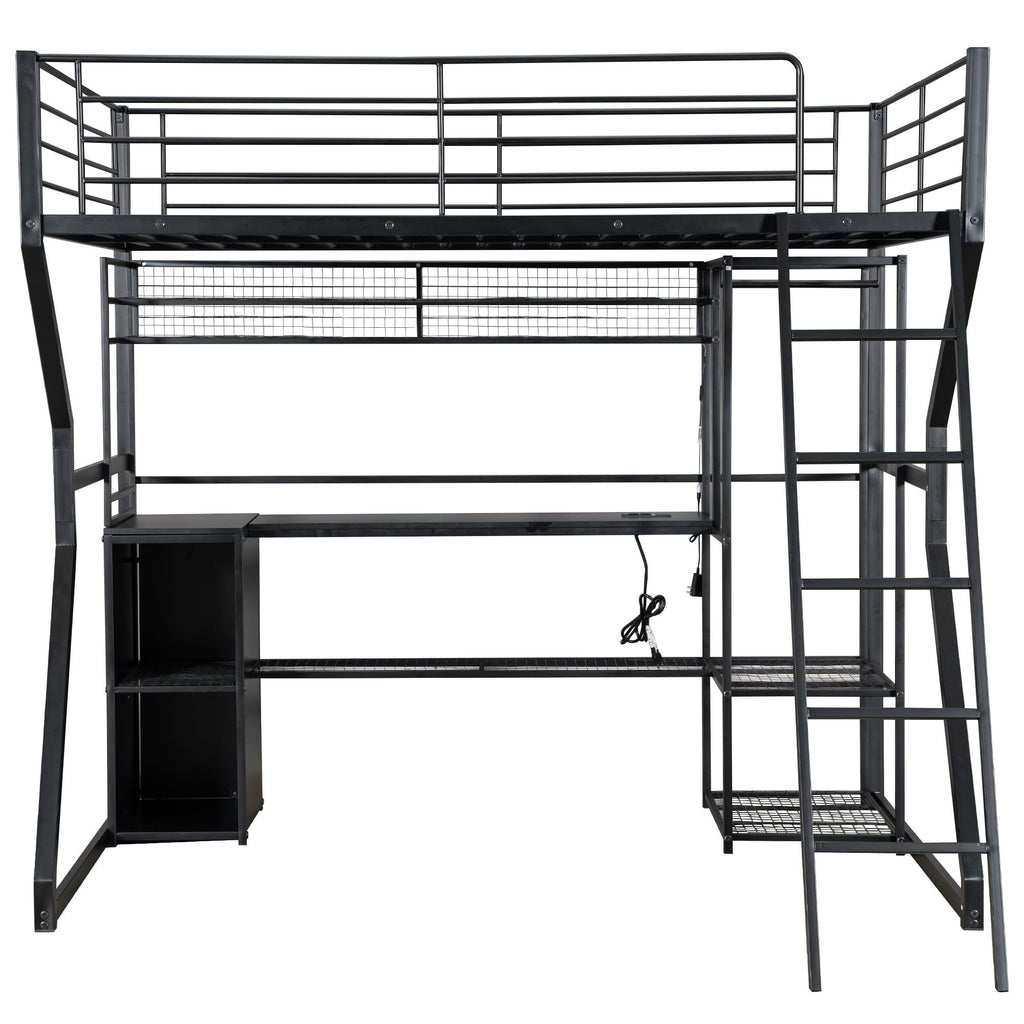 Full Size Gaming Loft Bed With Built In Work Station, Open Wardrobe, LED And Multiple Storage - Black