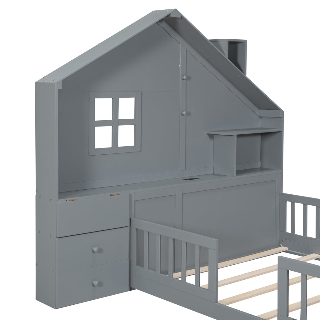 - [Versatility galore] The house bed with a set of sockets and USB port helps you eliminate the hassle of having nowhere to charge your phone or other electrical appliances.Anything in need can be put on the shelves, it is easy for you to access them.