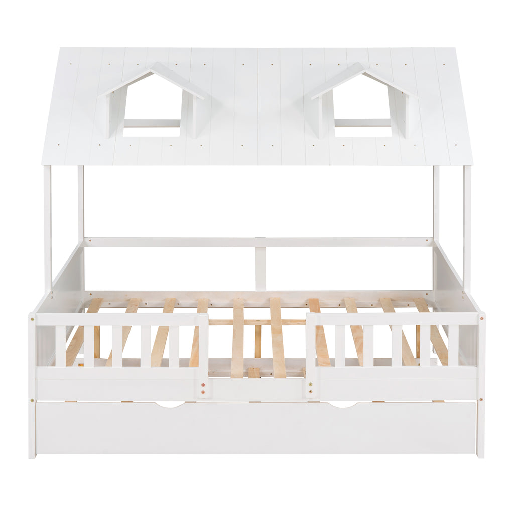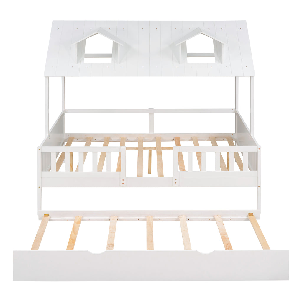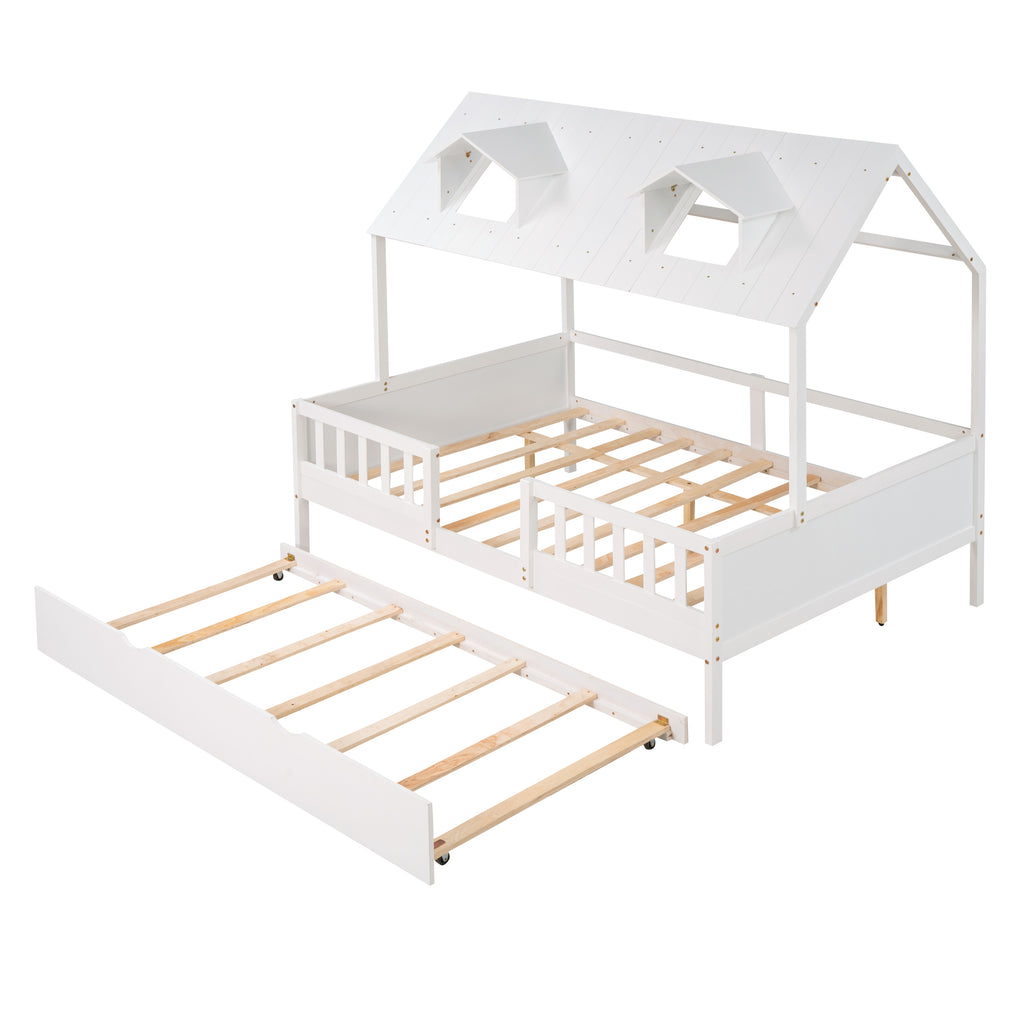 - [Maximized space] The playhouse bed takes up minimal space for two, while a roll-out trundle is fitted underneath for your kids' sleepover.