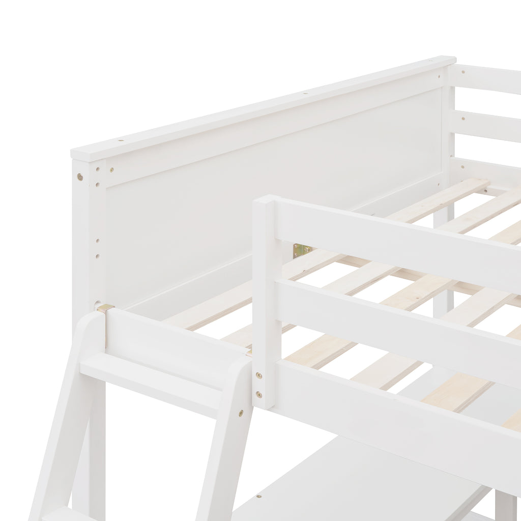 - v [Solid Construction] This muti-functional loft bed is crafted from a solid pine wood frame, with commercial grade MDF board for quality control and durability. The stable ladder can be assembled on other side of the bed. Guardrails are solidly attached for added safety.