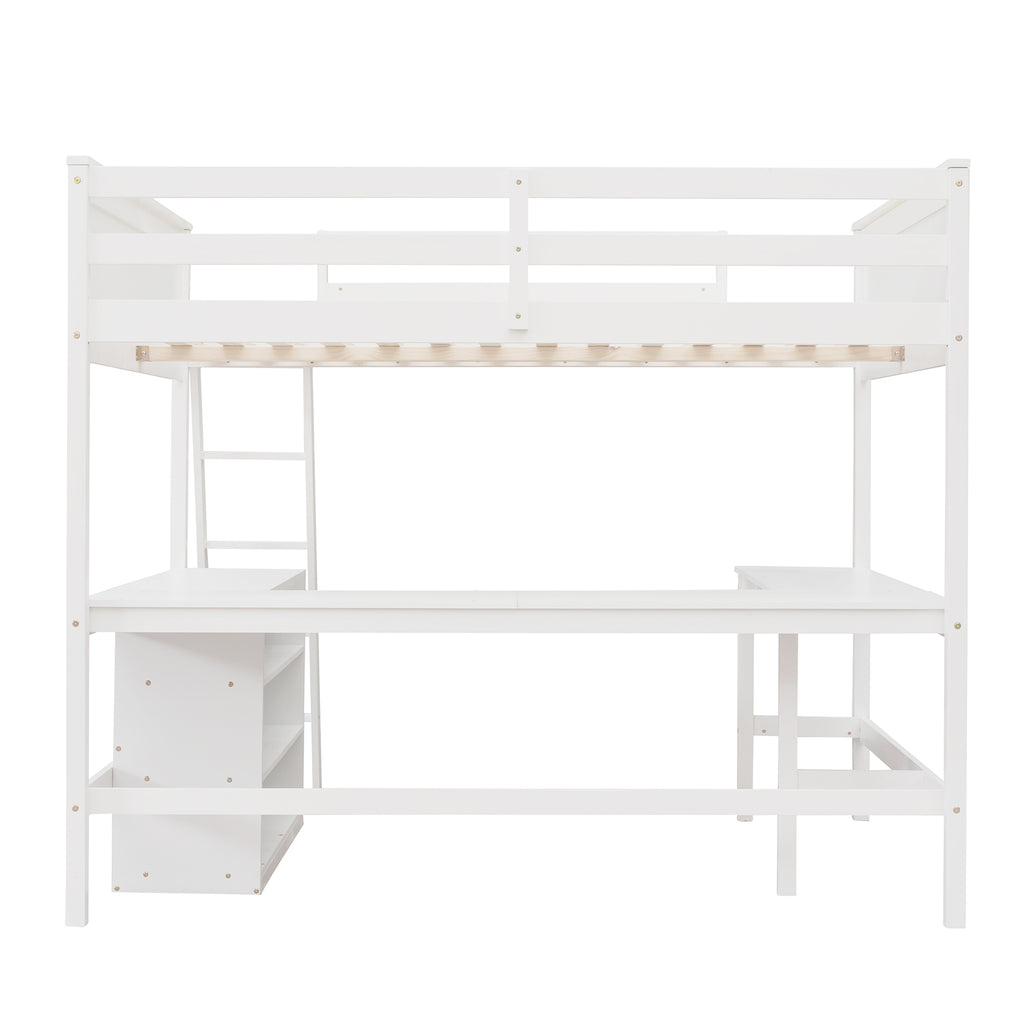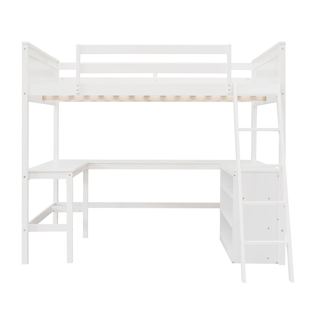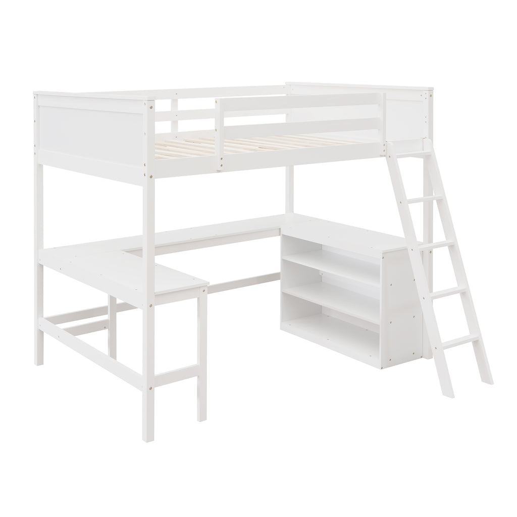 - v [Versatility galore] The space underneath the full size loft bed is a good place for you to read, do homework or play and create their own world to be explored. Coming with bookshelves and desk, the loft bed helps to store books, display decorations, or to place a laptop.