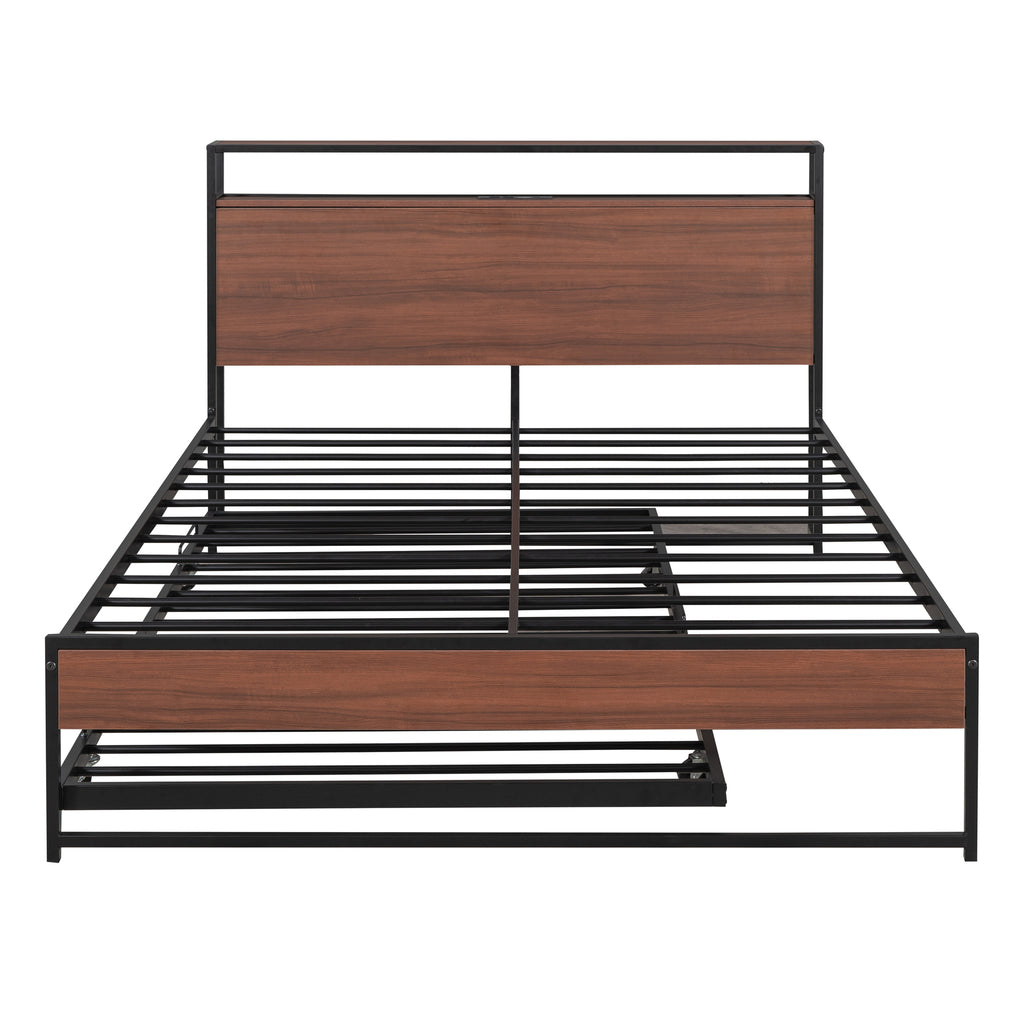 - {Modern Style and Exquisite Craftsmanship}The combination of metal bed frame and beautiful wooden board brings a natural accent to your home. Modern rustic style and versatility for many occasions, from large bedrooms to small apartments.