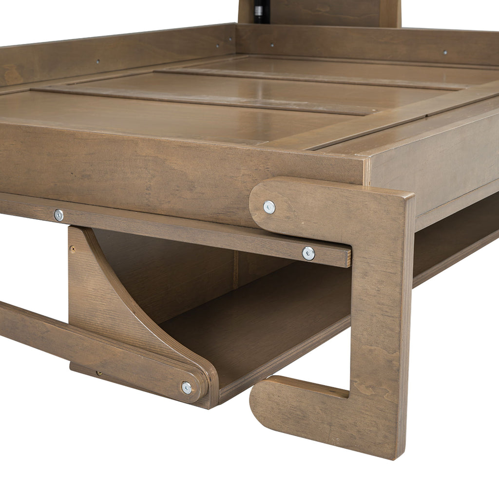 Full Size Murphy Bed With Wardrobe, Drawers, And Open Shelves - Wood