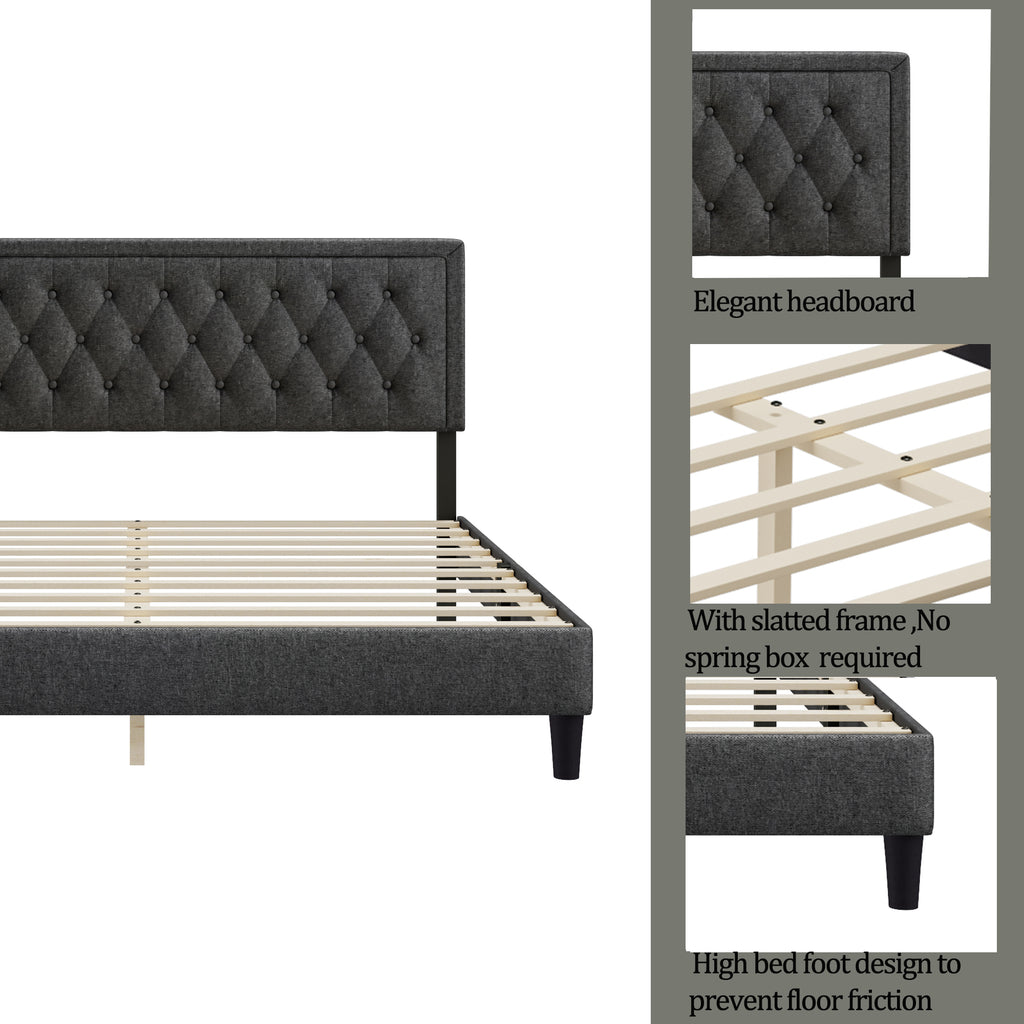 - THE BED NEEDS A BOX SPRING. STATEMENT PIECE An inviting piece that capitulates the gaze of every audience, upholstery bed welcomes you home with a sensation unlike any other. It’s traditional hand-pulled button tufting and smoothness top provides for a stylish end to your day.