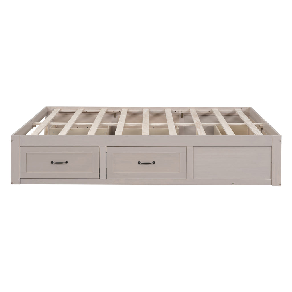- [Spacious Storage] Say goodbye to cluttered bedrooms! Our Platform Bed features 6 large drawers on 3 sides, providing you with ample storage space to neatly organize your belongings. From extra bedding to seasonal clothing, everything will have its designated place.