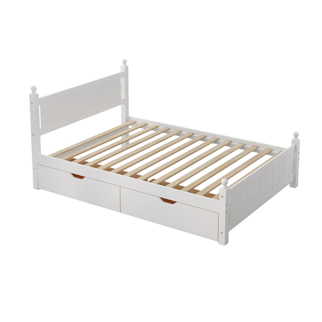 - Discover Extra Storage Space: Maximize your bedroom space with our platform bed featuring 2 large drawers on wheels. Perfect for stowing away seasonal clothes and other essentials, these slide-out drawers provide convenience with cut-out handles and smooth wheels, ensuring easy access. Plus, the versatile design allows you to use the drawers on either side of the bed.