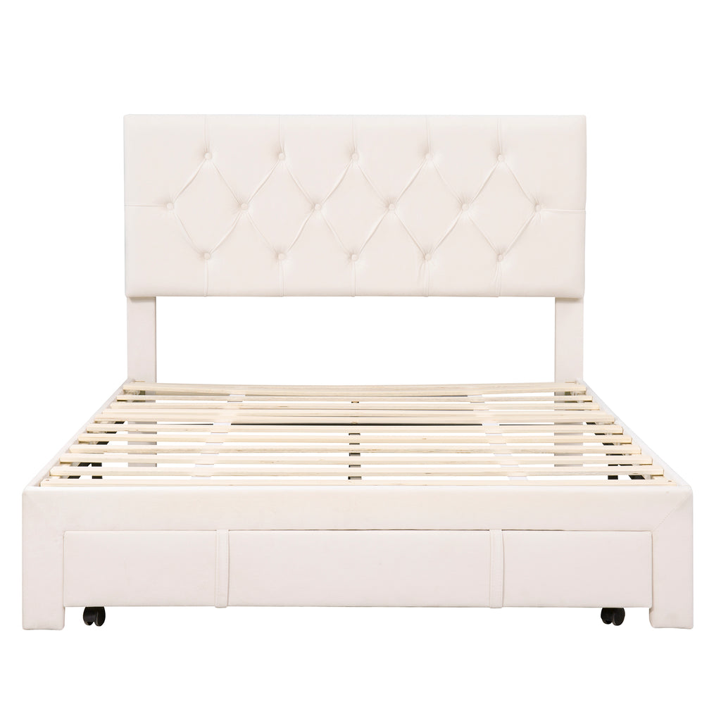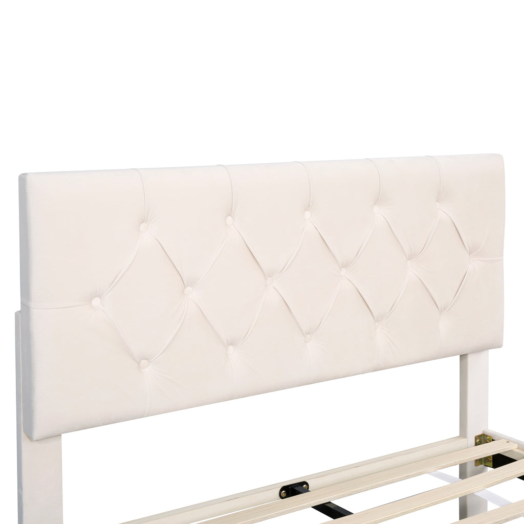 - [Elegant Design] Upholstered in carefully-selected velvet fabric, in elegant beige, and with decorative details, this platform bed not only suits any home decor, but is timeless in its design. The soft textile bedhead creates coziness, while the single color of the design creates versatility.