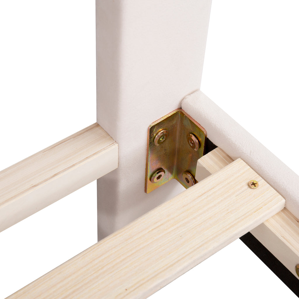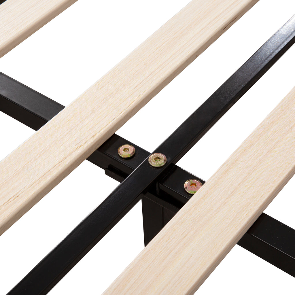 - [No Box Spring required] With 12 reinforced slats, the mattress (not included) will be well supported and your body weight will be evenly distributed for a great sleeping experience. Enjoy the convenience and unparalleled ease of use that this queen size wood platform bed provides. Headboard is included as a comfy velvet fabric backrest that brings you and your partner a cozy feeling.