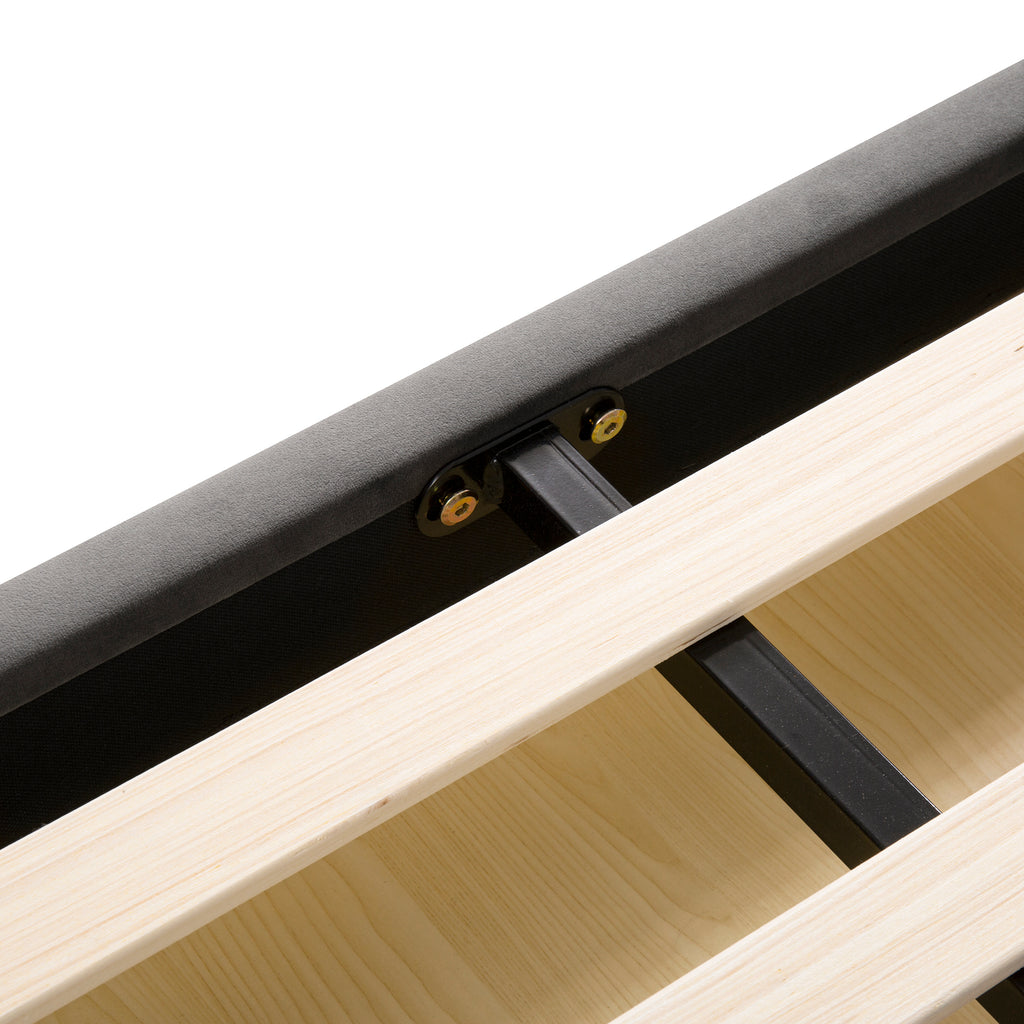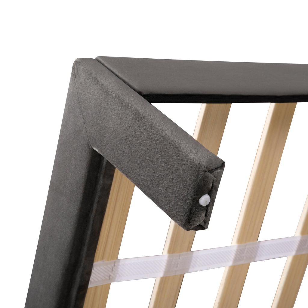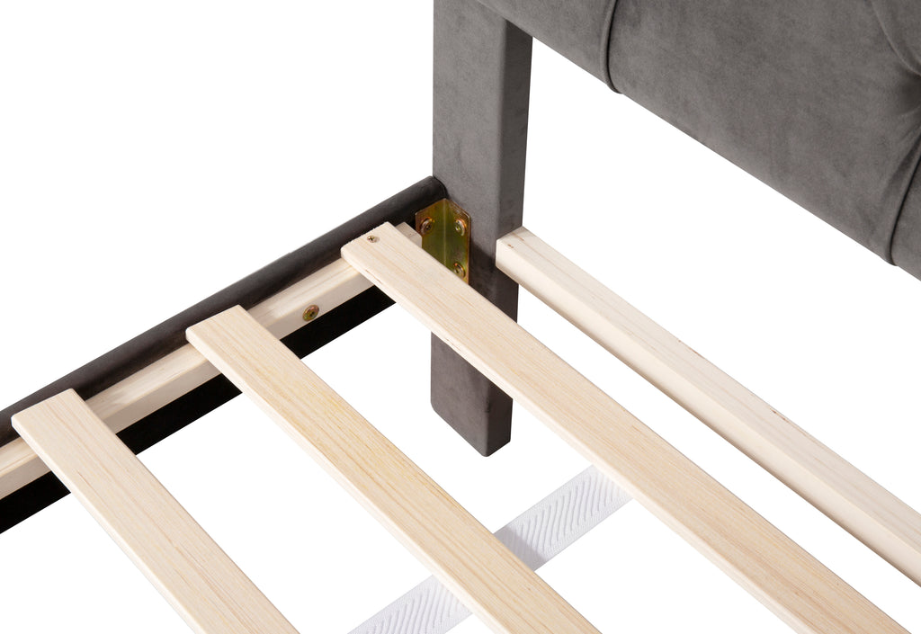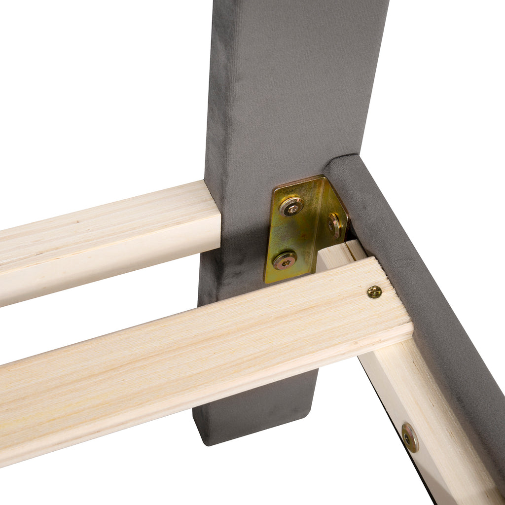 - [No Box Spring required] With 12 reinforced slats, the mattress (not included) will be well supported and your body weight will be evenly distributed for a great sleeping experience. Enjoy the convenience and unparalleled ease of use that this queen size wood platform bed provides. Headboard is included as a comfy velvet fabric backrest that brings you and your partner a cozy feeling.