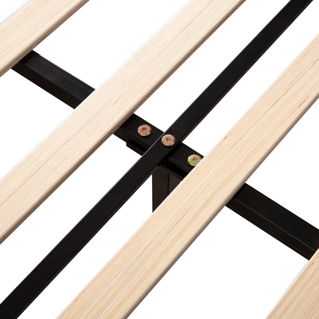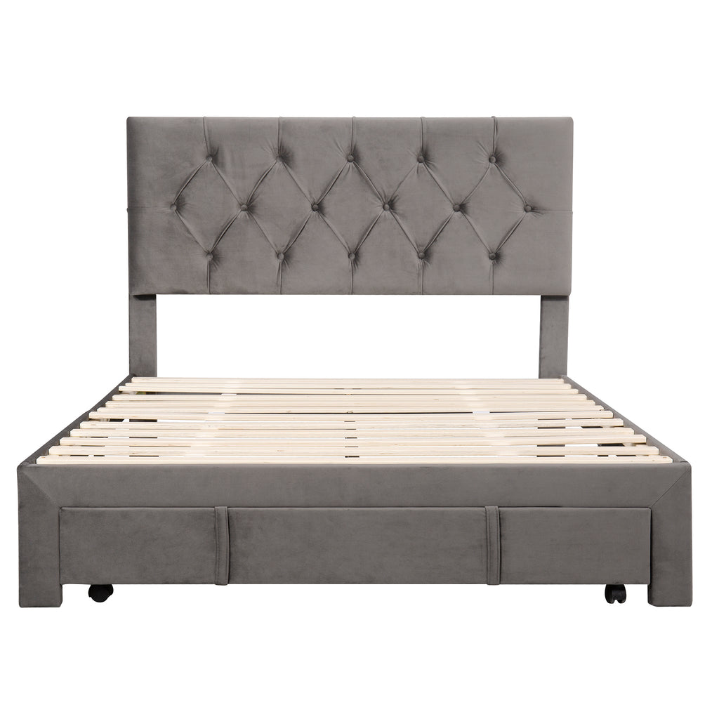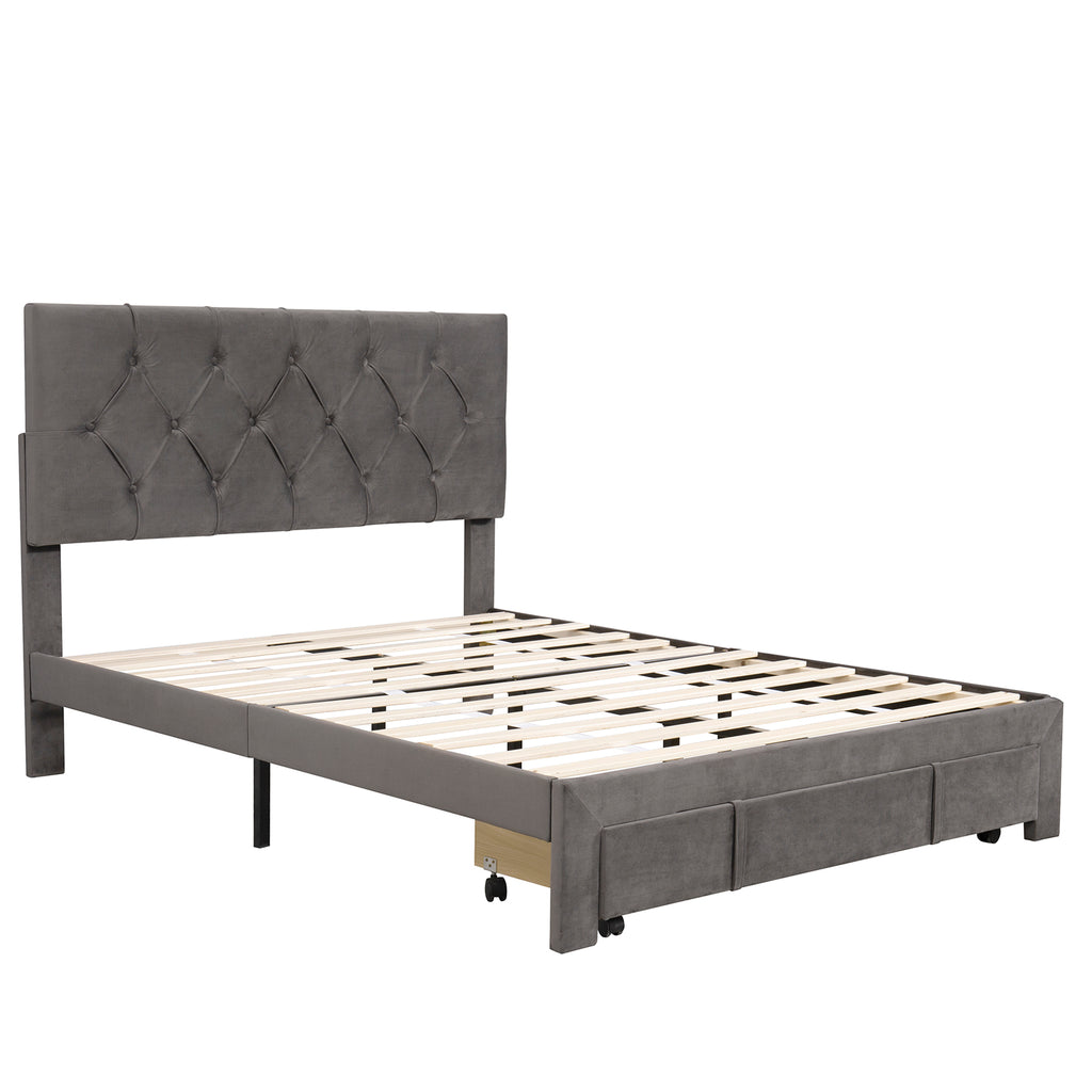 - [No Box Spring required] With 12 reinforced slats, the mattress (not included) will be well supported and your body weight will be evenly distributed for a great sleeping experience. Enjoy the convenience and unparalleled ease of use that this queen size wood platform bed provides. Headboard is included as a comfy velvet fabric backrest that brings you and your partner a cozy feeling.