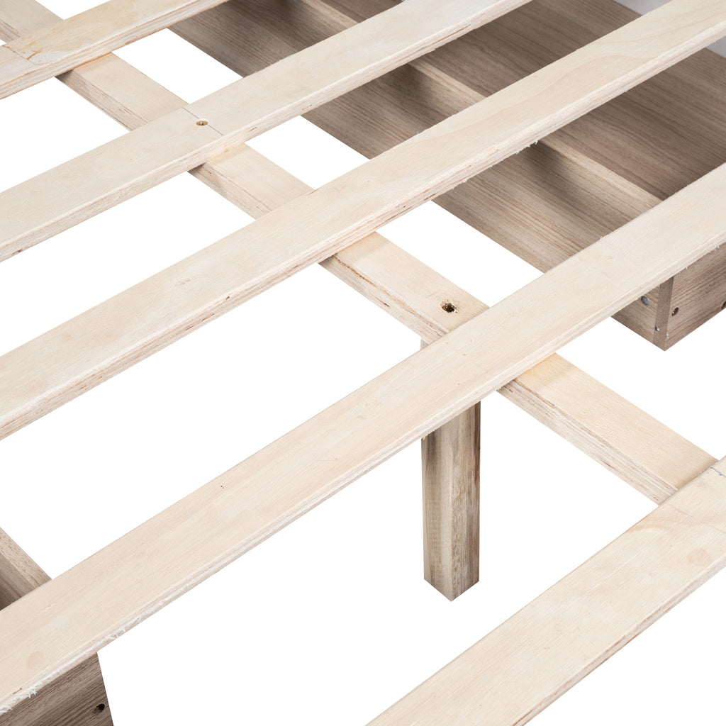 - [Sturdy Structure] This bed frame with headboard boasts a sturdy metal frame structure, supported by a series of evenly-spaced solid wood slats and extra 3 center support legs. It offers dense and strong support, capable of holding weights of up to 400lbs.